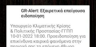 Μήνυμα από το 112 στα κινητά των Καρδιτσιωτών για τον «Διομήδη»