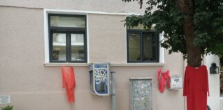 Κρέμασαν 13 γυναικεία φορέματα στο Γαλλικό ινστιτούτο για τις 13 γυναικοκτονίες...