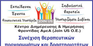 Το Join US συνεχίζει τα θεραπευτικά προγράμματα και δραστηριότητες και το...