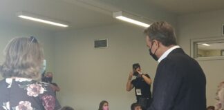 Με τους μικρούς μαθητές σε αίθουσα του σχολείου του Δαμασίου ο...