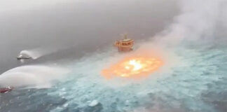 «Πύρινο μάτι»: Διαρροή αερίου προκάλεσε τεράστια πυρκαγιά στην επιφάνεια του ωκεανού...