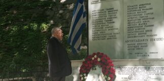 Συγκίνηση στα Τέμπη στην κατάθεση στεφανιού από τον τελευταίο επιζώντα αντιστασιακό