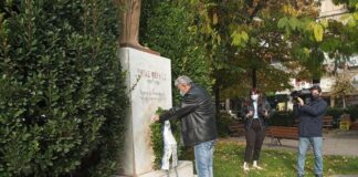 Τρία μέλη του ΣΥΡΙΖΑ Λάρισας κατεθεσαν στεφάνι στην πλατεία Ρήγα Φερραίου...