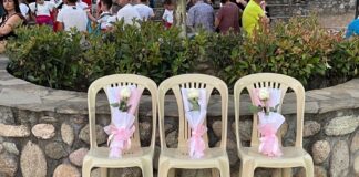 Τέμπη: 3 άδειες καρέκλες με τρία λευκά τριαντάφυλλα στο Καστράκι για...