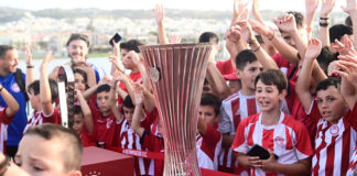 H υποδοχή των ευρωπαϊκών Κυπέλλων του Ολυμπιακού (video)