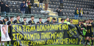 Πανό για τα Τέμπη και τις πλημμύρες, φανέλα για τον Σπύρο...