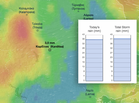 Σημαντικά ύψη βροχοπτώσεων στο Ν. Καρδίτσας και πτώση της θερμοκρασίας από την κακοκαιρία (δεδομένα)