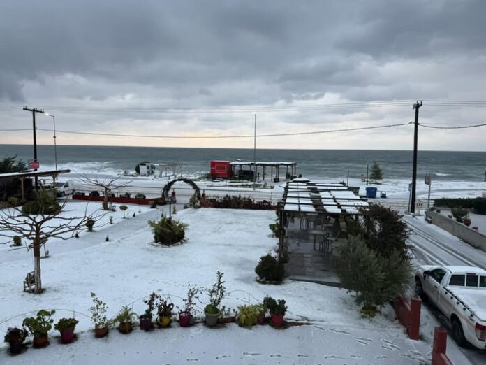 Με χιόνι ξύπνησαν σήμερα Δευτέρα 19 Ιανουαρίου οι ορεινές και ημιορεινές περιοχές του Δήμου Αγιάς, και με ασθενή βροχόπτωση όλες οι υπόλοιπες, πλην (όλως παραδόξως) της παραλιακής ζώνης μόνο στο τμήμα Σωτηρίτσα – Βελίκα όπου το χιόνι έφτασε ως το… κύμα!!!