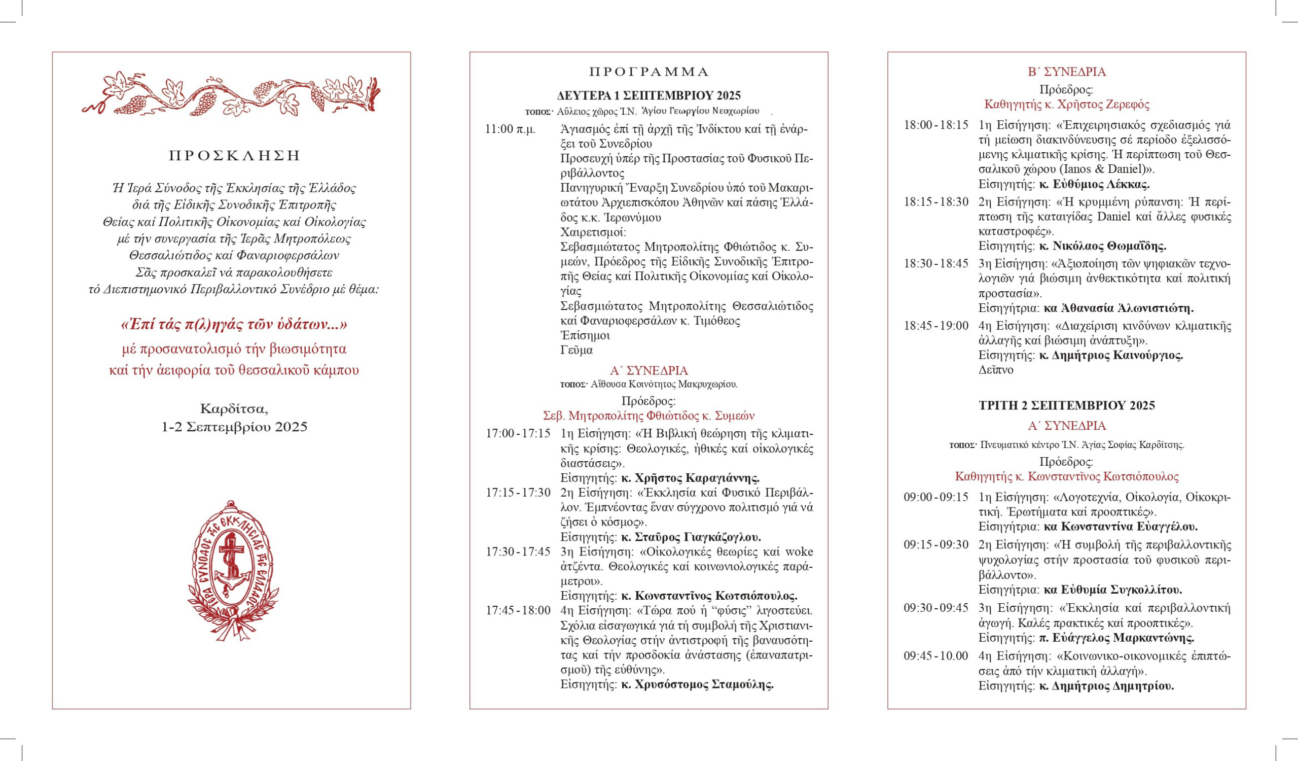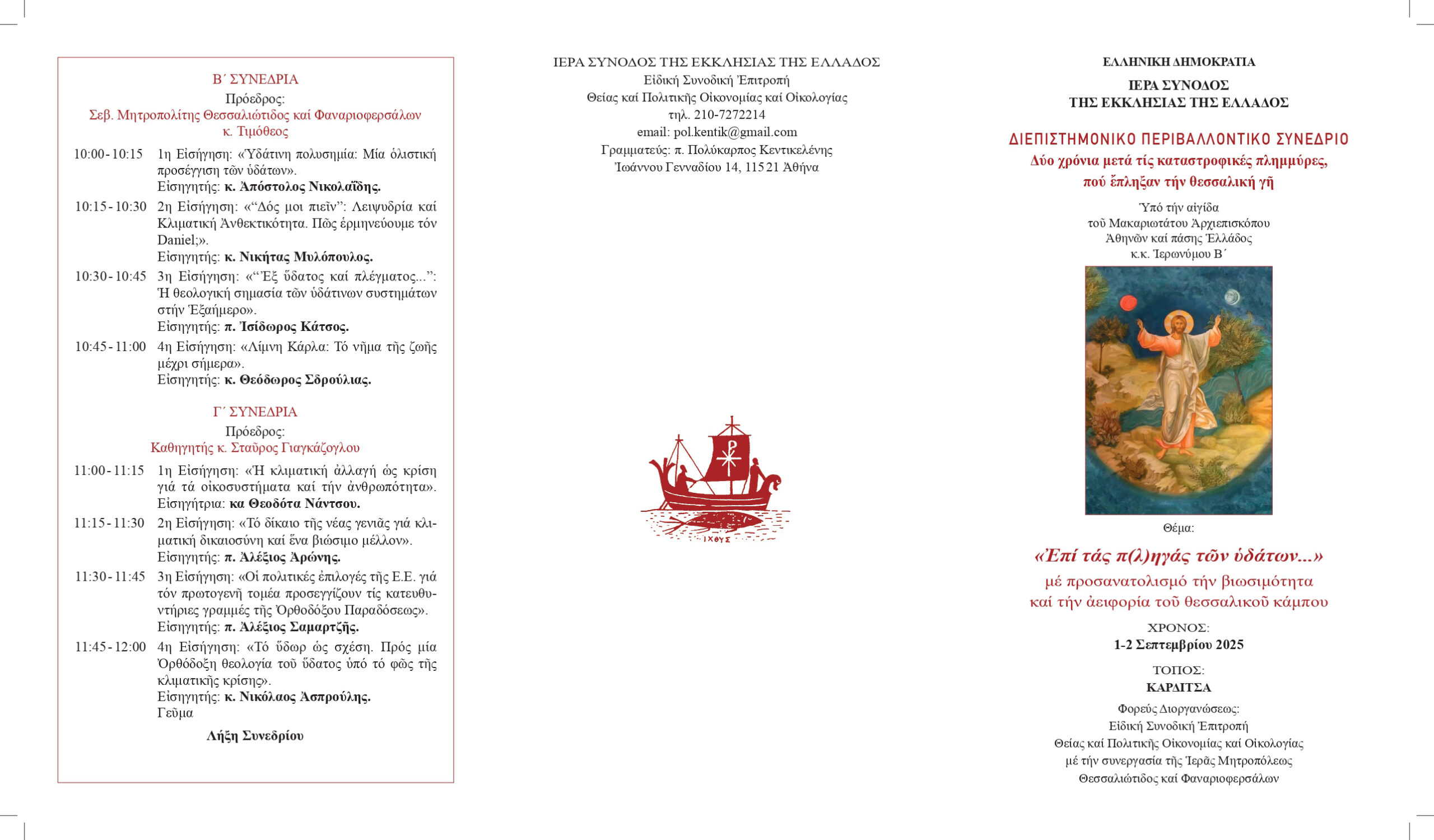 Διεπιστημονικό περιβαλλοντικό συνέδριο διοργανώνουν στην Καρδίτσα με αφορμή τη συμπλήρωση δύο ετών από τις καταστροφικές πλημμύρες που έπληξαν τη Θεσσαλία, η Ιερά Σύνοδος της Εκκλησίας της Ελλάδος σε συνεργασία με την Ιερά Μητρόπολης Θεσσαλιώτιδος και Φαναριοφερσάλων.