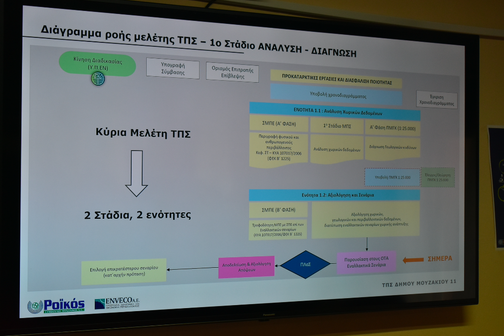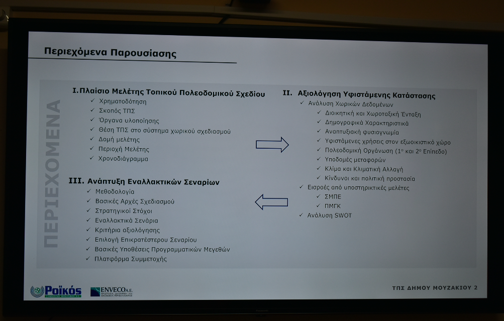Κατά τη διάρκεια της ενημερωτικής εκδήλωσης παρουσιάστηκαν οι προτεινόμενες κατευθύνσεις σε τρία σενάρια, μηδενικής, ήπιας και έντονης παρέμβασης για τη χωρική οργάνωση του Δήμου και προκρίνεται εκείνο της ήπιας παρέμβασης.
