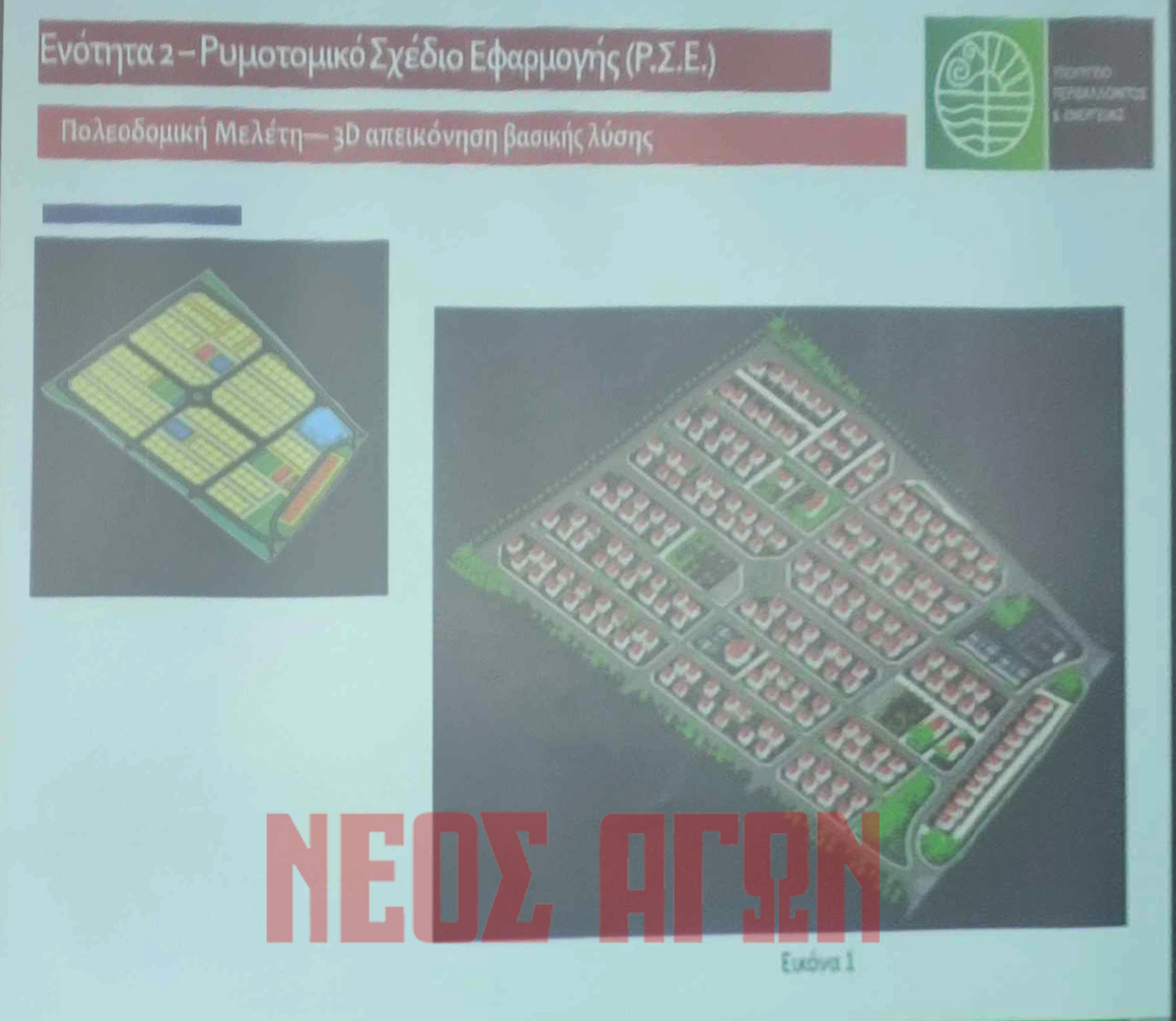 Περαιτέρω, όπως είναι γνωστό ο ΣΕΒ υλοποίησε εν είδει δωρεάς τις απαιτούμενες μελέτες οι οποίες έχουν συνταχθεί σύμφωνα με τις προδιαγραφές και έχουν διαβιβαστεί στο ΥΠΕΝ για προέλεγχο από τις αρμόδιες Διευθύνσεις. Ο σκοπός της εν λόγω πράξης είναι να διασφαλιστεί η επιτυχής και βιώσιμη ανάπτυξη της περιοχής, προσφέροντας τις απαραίτητες υποδομές και εξασφαλίζοντας τη μέγιστη δυνατή ποιότητα ζωής για τους κατοίκους του νέου οικισμού.
