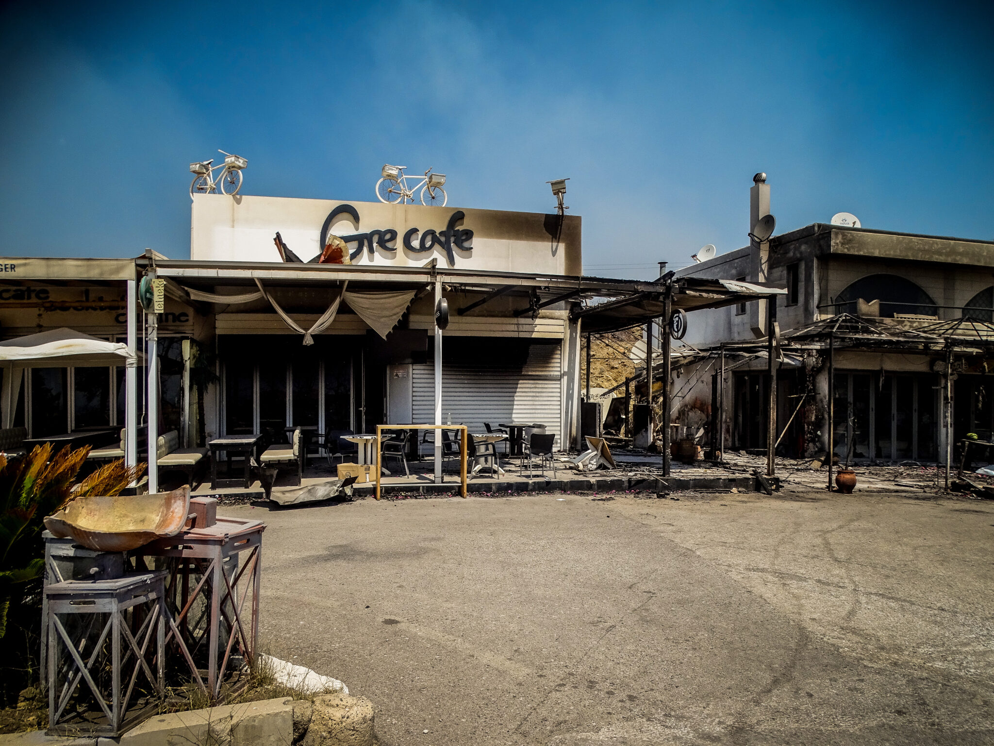 Στο Ασκληπειό η πύρινη λαίλαπα στο πέρασμα της από το χωριό προκάλεσε ζημιές σε τουλάχιστον δέκα σπίτια, με μία πρόχειρη εκτίμηση, καθώς η μάχη συνεχίζεται και εκεί λόγω των συνεχώς αναζωπυρώσεων.