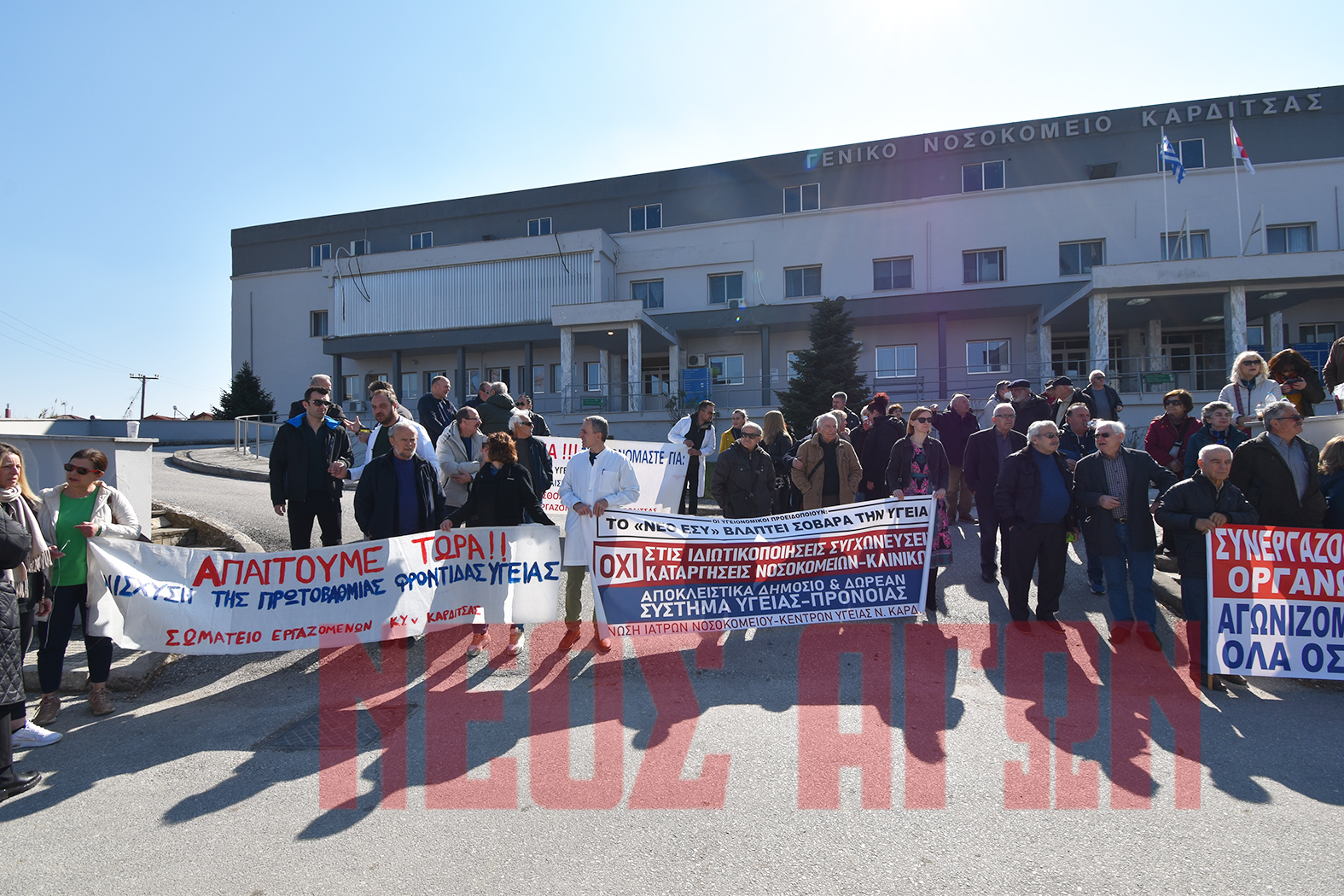 Μαζική απεργιακή κινητοποίηση στην πύλη του Νοσοκομείου διοργάνωσαν σήμερα Πέμπτη (22/2) υγειονομικοί του Ν. Καρδίτσας, έχοντας στο πλευρό τους τις συνεργαζόμενες συνταξιουχικές οργανώσεις και άλλους τοπικούς φορείς. Η κινητοποίηση πραγματοποιήθηκε στο πλαίσιο της πανυγειονομικής απεργίας για τα εργασιακά ζητήματα των υγειονομικών και ενάντια στην εμπορευματοποίηση της δημόσιας υγείας.