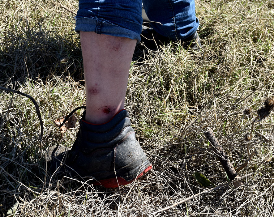 Κάτοικος από την περιοχή της Ψαθοχώρας δείχνει στο φακό του «Ν.Α» τη μόλυνση που έχει υποστεί το πόδι
