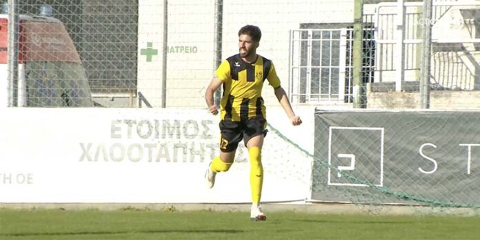 • Στη ΦΩΤΟ ο Αποστόλης Στίκας που πανηγυρίζει το γκολ με το οποίο η ομάδα του πήρε τη νίκη επί του Μακεδονικού.