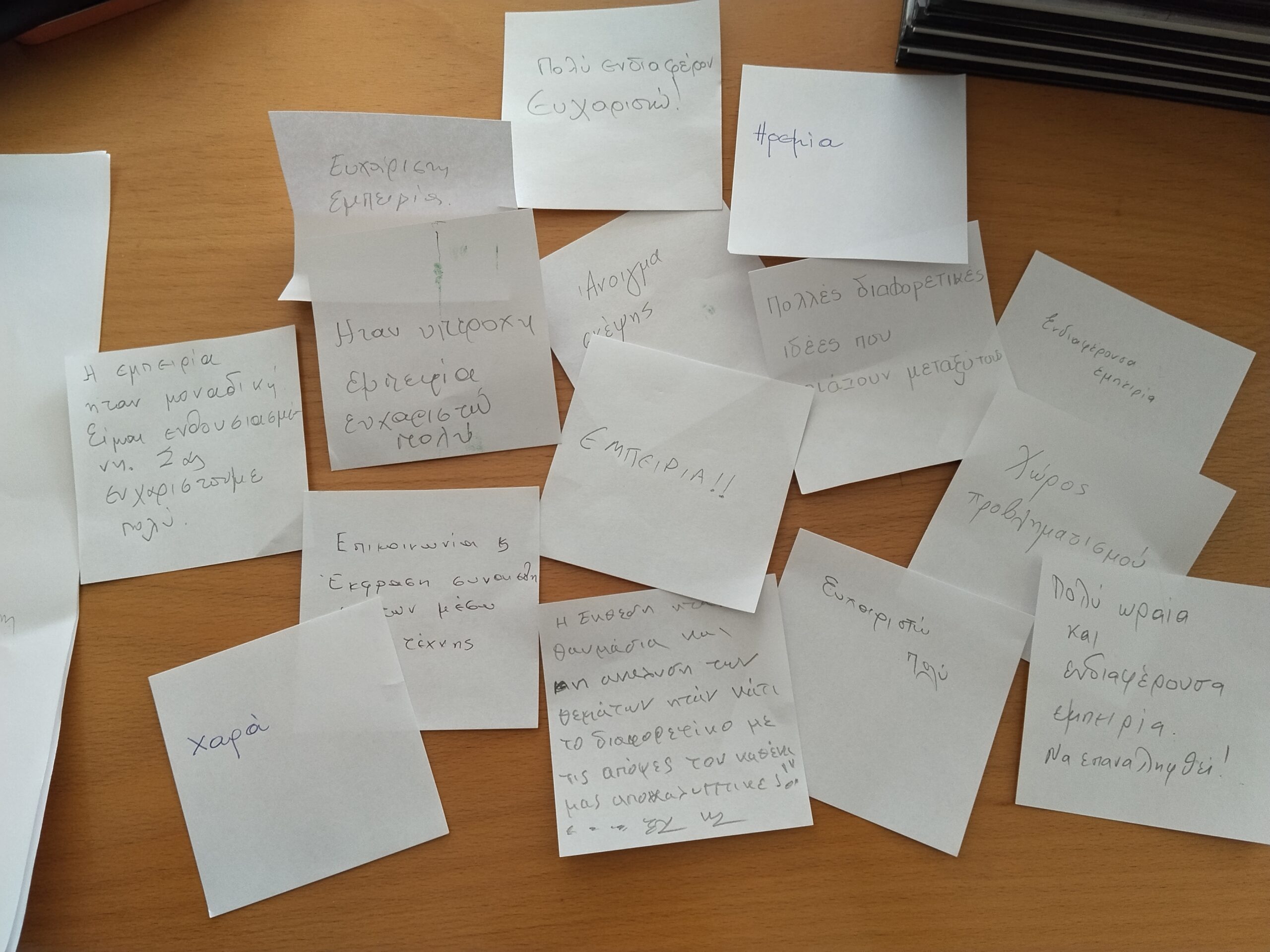 Το 1ο εργαστήριο αργής θέασης των έργων τέχνης στην ΔΠΚ ολοκληρώθηκε με σχόλια περισσότερο από θετικά και με παράκληση όλων να ξαναζήσουμε ανάλογες εμπειρίες. Η ΔΠΚ ευχαριστεί όλες / όσες / όλους όσους συμμετείχαν στο εργαστήριο.