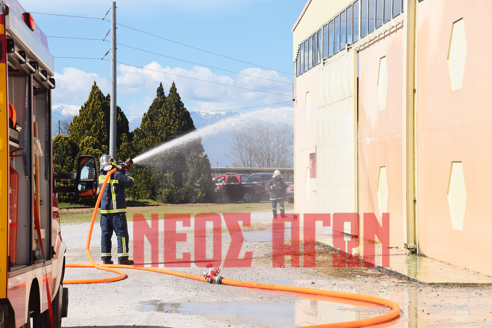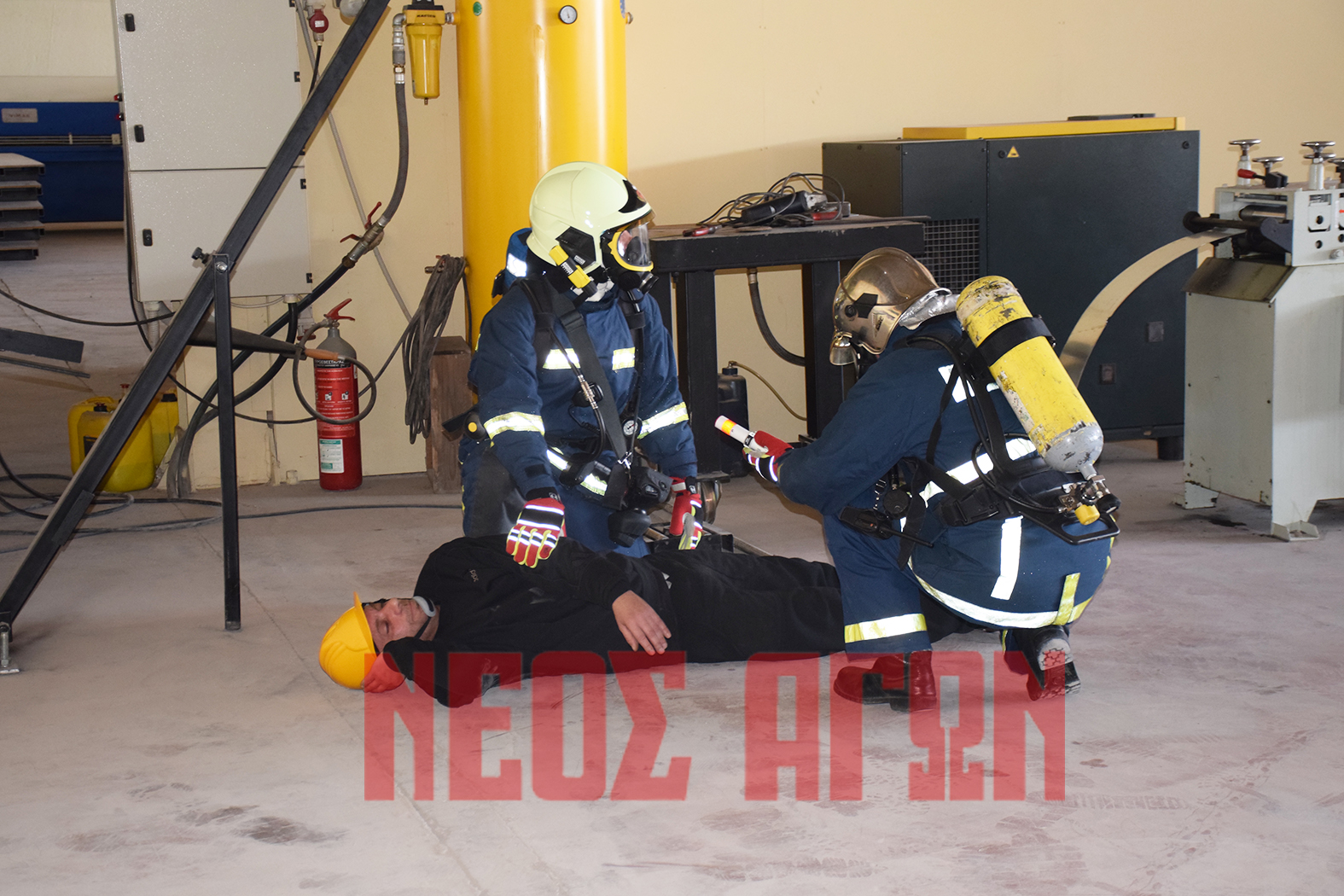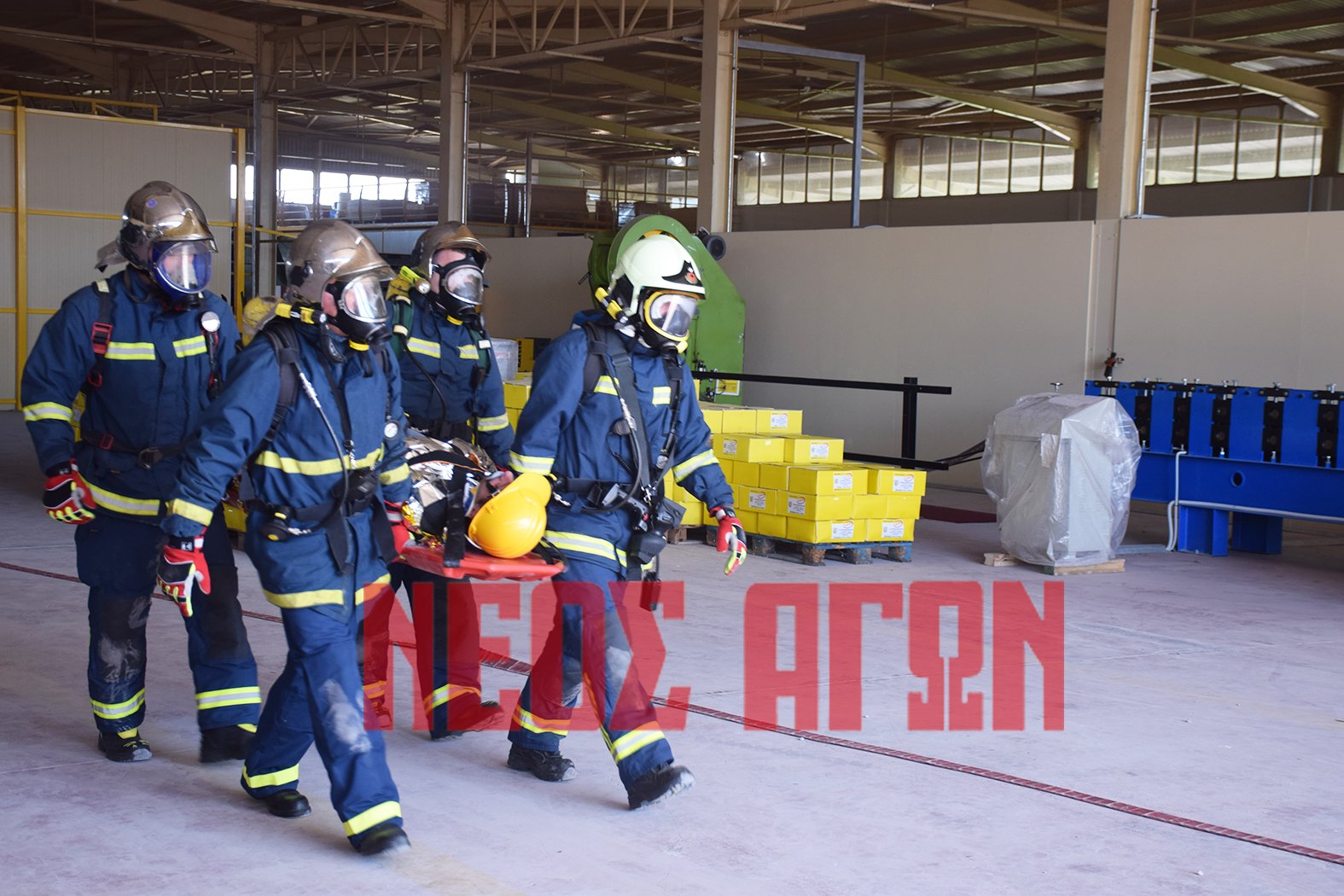 Το σενάριο της άσκησης είχε ως εξής: «Απεγκλωβισμός και διάσωση εργαζομένου, με ταυτόχρονη κατάσβεση πυρκαγιάς. Πριν την άφιξη των πυροσβεστικών δυνάμεων, η ομάδα πυροπροστασίας της επιχείρησης με τα υπάρχοντα μέτρα ενεργητικής πυροπροστασίας, τους πυροσβεστήρες και κάνοντας χρήση του μόνιμου υδροδοτικού δικτύου, προσπαθεί για την άμεση καταστολή της πυρκαγιάς αλλά λόγω του μεγάλου όγκου της καύσιμης ύλης και των συνθηκών δεν κατέστη δυνατή. Ένας εργάτης στην προσπάθεια προσέγγισης για κατάσβεση, υπερεκτίμησε τις δυνατότητές του, με συνέπεια να εγκλωβιστεί και να τραυματιστεί.
