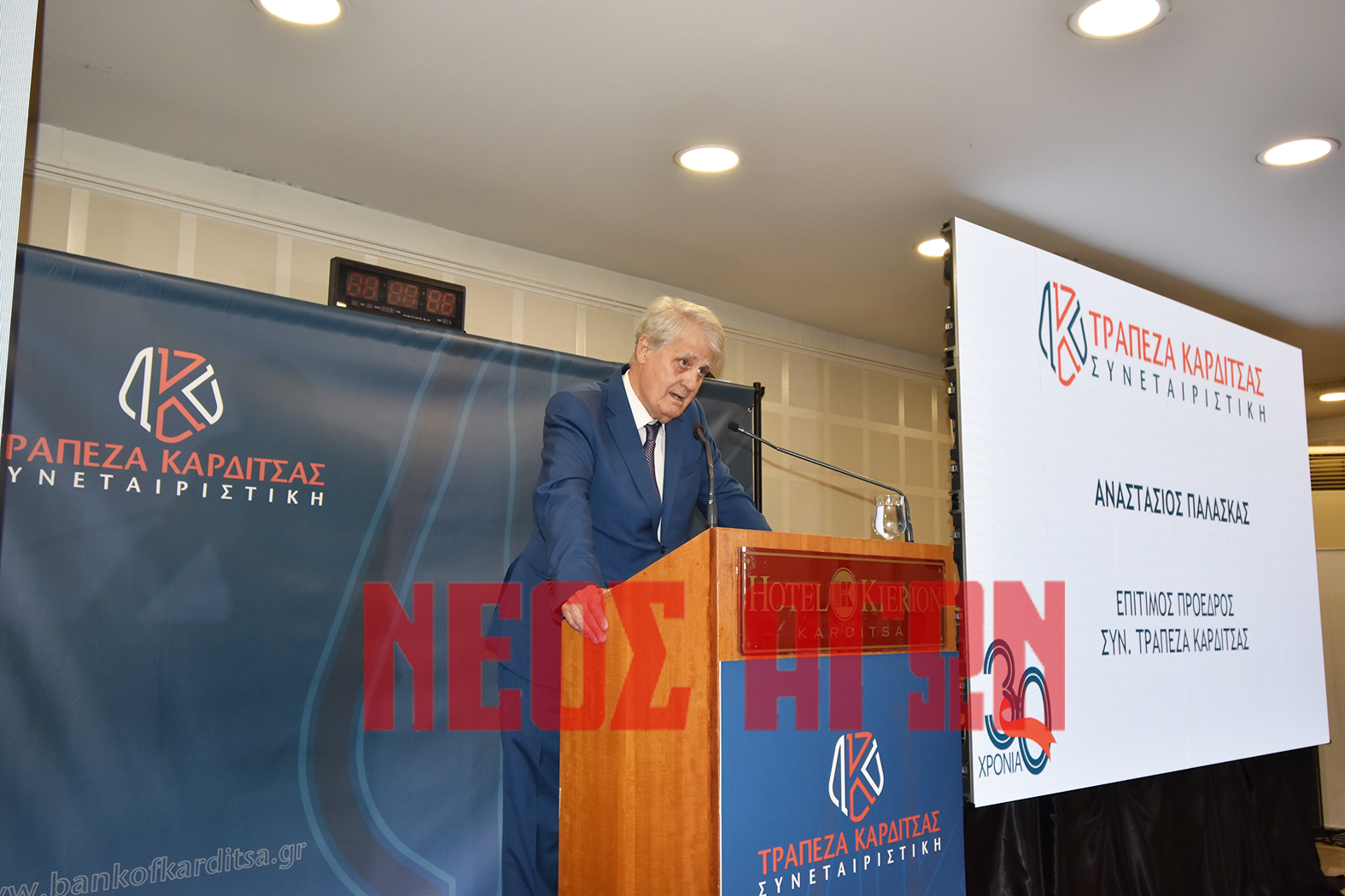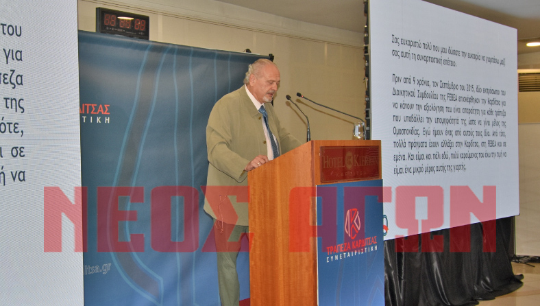 Χαιρετισμό απηύθυνε μεταξύ άλλων και ο επίτιμος Πρόεδρος (πρώτος Πρόεδρος) της Συνεταιριστικής Τάσος Παλάσκας ο οποίος χαρακτήρισε ημέρα γιορτής τη χθεσινή για την Συνεταιριστική Τράπεζα Καρδίτσας.