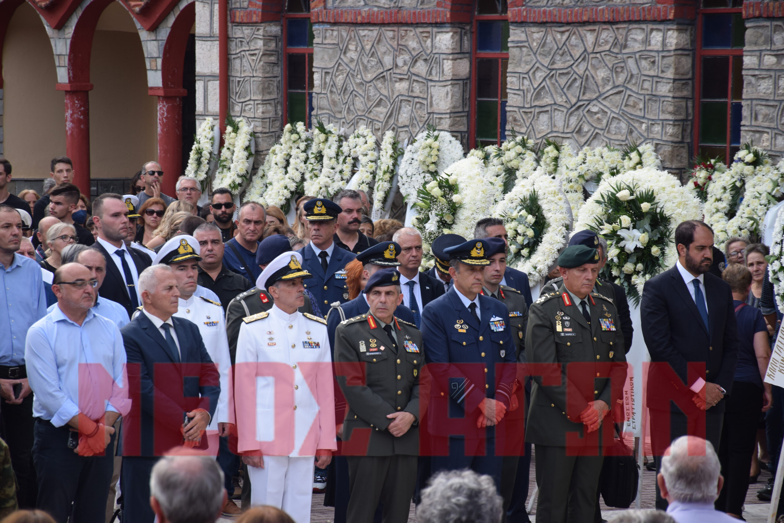 Η σορός του, σκεπασμένη με τη Γαλανόλευκη έφθασε στο Ιερό Ναό Κοιμήσεως Θεοτόκου Μουζακίου γύρω στις 4 το μεσημέρι. Το κλίμα στον Ιερό Ναό όπου εψάλη η εξόδιος ακολουθία στην οποία χοροστάτησε ο Μητροπολίτης Θεσσαλιώτιδος και Φαναριοφερσάλων κ. Τιμόθεος, ήταν ιδιαίτερα βαρύ και φορτισμένο συγκινησιακά. Τραγικές φιγούρες, οι συγγενείς του αδικοχαμένου στρατιωτικού.
