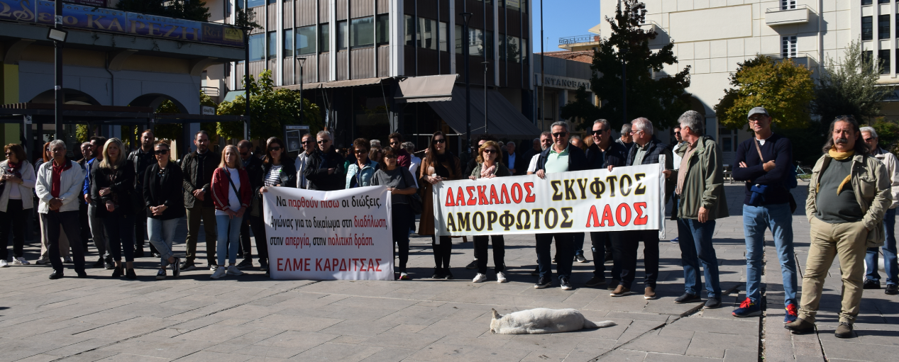 Κατά την ομιλία του ο Πρόεδρος της ΕΛΜΕ Καρδίτσας Αλέξης Φυτσιλής, ανέφερε ότι το μήνυμα της κυβέρνησης με αυτές τις ενέργειες, είναι να μην επιτρέψει στους εκπαιδευτικούς να ασκούν κανένα συνδικαλιστικό δικαίωμα. «Αυτή η μεθόδευση δεν πρέπει να μείνει ανανταπάντητη, Η κυβέρνηση μας έριξε το γάντι, να το σηκώσουμε συνάδελφοι. Οι αγώνες μας είναι δίκαιοι και αναγκαίοι, για να διεκδικήσουμε τη μόρφωση και τις σπουδές των παιδιών μας, σταθερή εργασιακή δουλειά, μονιμοποίηση των νεοδιόριστων, και αντίσταση στην κατηγοριοποίηση των σχολείων. Είναι δίκαιο και αναγκαίο να υπερασπίζεσαι την ελεύθερη πολιτική και συνδικαλιστική δράση», ανέφερε μεταξύ άλλων ο κ. Φυτσιλής.
