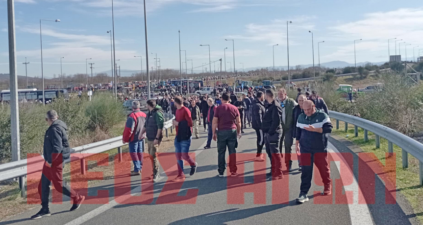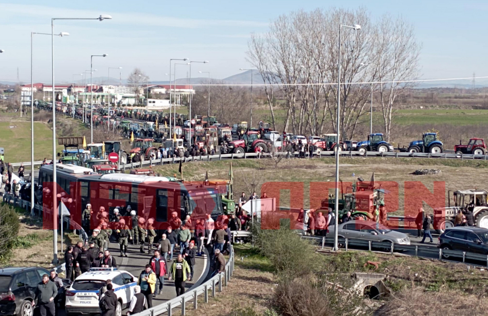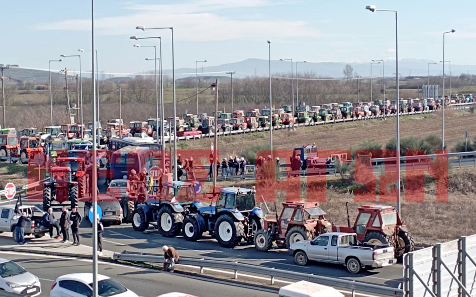 Νωρίτερα, με τα τρακτέρ μπλοκαρισμένα στις εισόδους του κυκλικού κόμβου, είχαν ξεκινήσει συζητήσεις των εκπροσώπων της Ομοσπονδίας Αγροτικών Συλλόγων με την αστυνομία, με τους αγρότες να ζητούν να ανέβουν στον Ε-65 με τα τρακτέρ, αίτημα που δεν έγινε δεκτό από την αστυνομία.