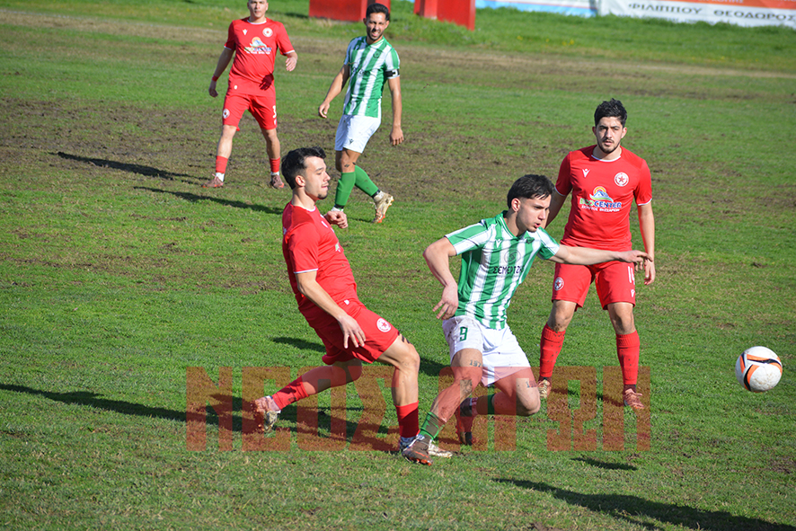 Οι φιλοξενούμενοι προηγήθηκαν δύο φορές στο σκορ με τους Σωτηριάδη (23′) και Πιπιλιάδη (50′), οι ”ερυθρόλευκοι” ισοφάρισαν αντίστοιχα σε 1-1 και 2-2 με τον Τ. Κατσιγιάννη (36′,57′ πεν).