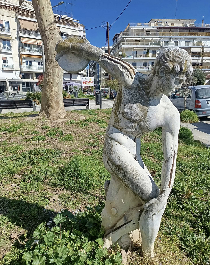 Παράλληλα, στο πλαίσιο των παρεμβάσεων, καλό θα ήταν να γίνει καιμια συντήρηση στο μικρό ομοίωμα τουαγάλματος του δυσκοβόλου του Μύρωνα στη γωνία της πλατείας στη διασταύρωση των οδών Λουκιανού καιΜπιζανίου. Έχει υποστεί σημαντικέςφθορές με το πέρασμα του χρόνου καιχρειάζεται μια μικρή συντήρηση.