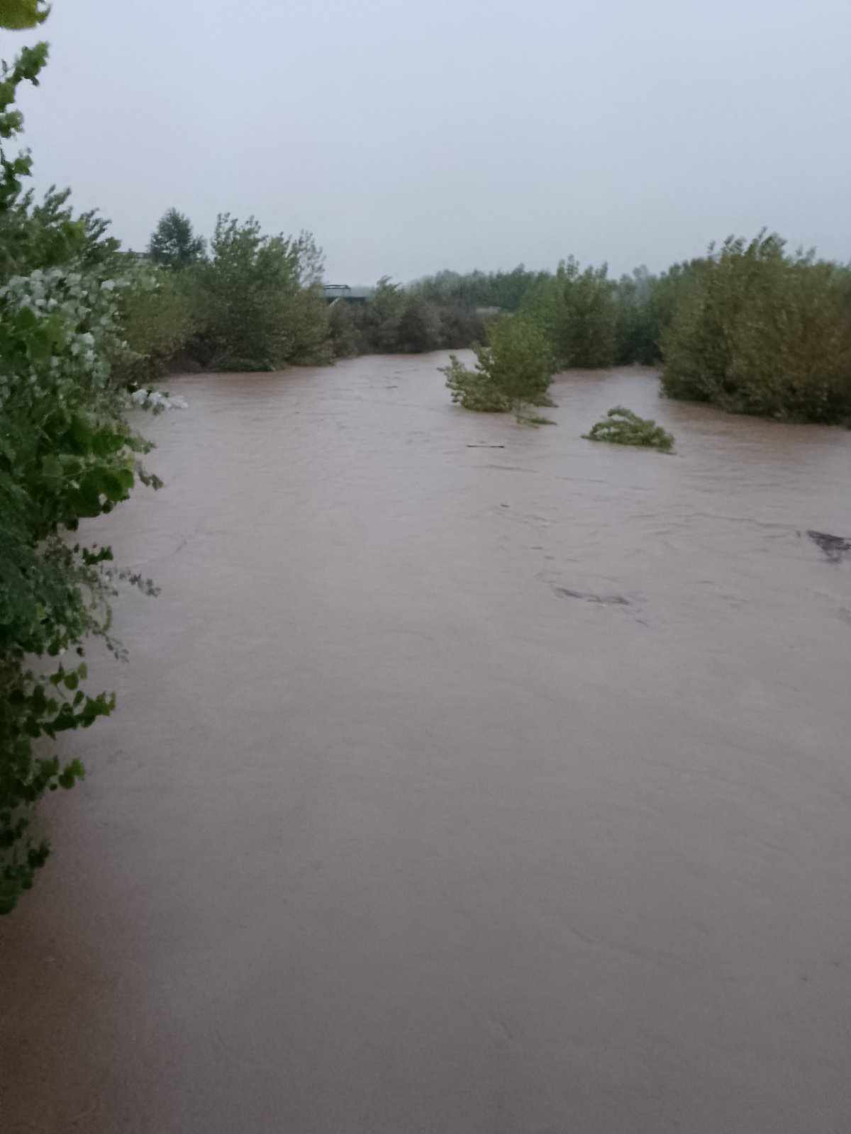 Την ίδια ώρα συνεχίζει να κατεβαίνει νερό από τα ορεινά και μαζί κορμοί με φερτά υλικά, με την κακοκακαιρία να μην λέει να κοπάσει.