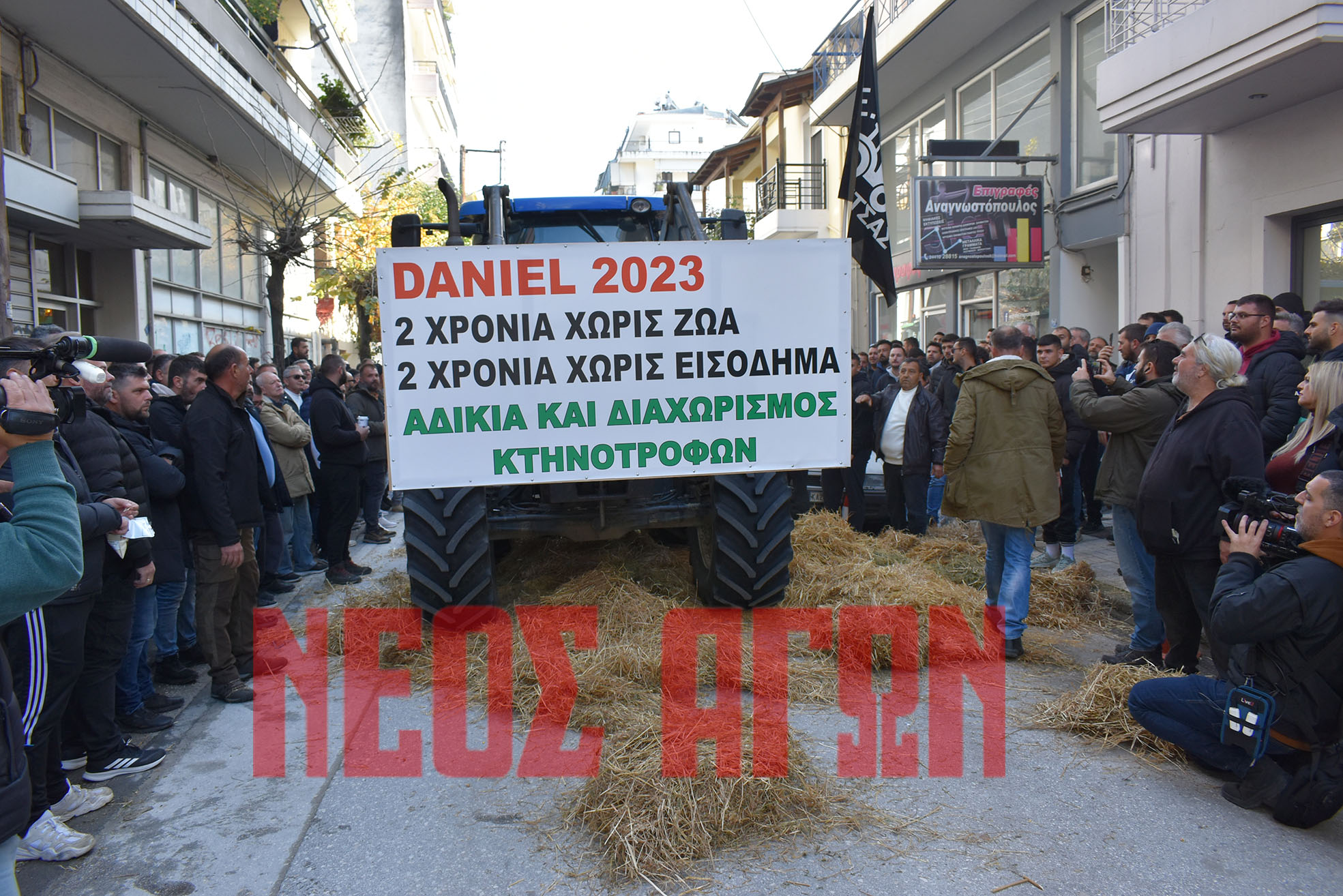 Σε κινητοποίηση έξω από το γραφείο του Υπουργού Αγροτικής Ανάπτυξης Κ. Τσιάρα στην Καρδίτσα προχώρησαν σήμερα το πρωί αγρότες και κτηνοτρόφοι από το μπλόκο του Ε-65.
