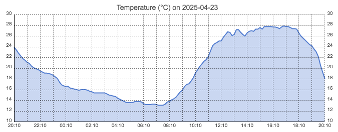 Η θερμοκρασία σημείωσε πτώση περίπου 10 βαθμών Κελσίου σε διάστημα δύο ωρών και από τους 28 βαθμούς στις 6 το απόγευμα έπεσε στους 18 στις 8 βράδυ.