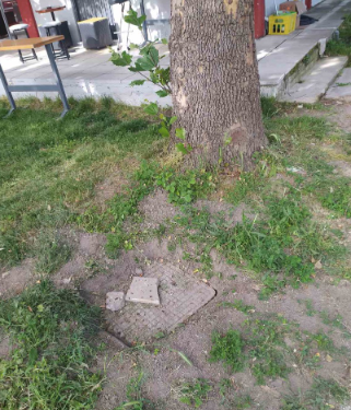 το οποίο βρίσκεται στα σκαλιά ανεβαίνοντας στο κυλικείο, πρόκειται για αυτοφυές δέντρο το οποίο αφέθηκε να μεγαλώσει σε αυτό το σημείο με αποτέλεσμα να δημιουργήσει προβλήματα όπως φαίνεται και στις φωτογραφίες στο φρεάτιο αλλά και στα σκαλιά. Το συγκεκριμένο είδος έχει πολύ επιθετική ρίζα και είναι θέμα χρόνου να δημιουργήσει μεγαλύτερα προβλήματα, για όλους τους παραπάνω λόγους εισηγούμαστε την ολική του κοπή και σε αντιστάθμιση θα τοποθετηθεί δέντρο σε κοντινή απόσταση ασφαλείας. Με αποτέλεσμα στο κενό που θα δημιουργηθεί από την κοπή των δυο δέντρων (πλατάνι 3ο & 4ο ), Θα δημιουργηθεί μια νέα δεντροστοιχία σκίασης και σωστής υποδομή (πετάσματα καθοδήγησης ριζών). Χωρίς να κινδυνεύει το ταρτάν του γηπέδου μπάσκετ. Το οποίο όπως φαίνεται και στις φωτογραφίες βρίσκεται σε κοντινή απόσταση.