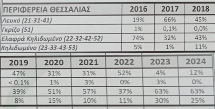 Όμως στη συνέχεια βούτηξε στο 4% το 2023 με τον «Ντάνιελ» και έφθασε στο 12% πέρυσι. Αντίστροφη πορεία είχε το ελαφρά κηλιδωμένο και το κηλιδωμένο.