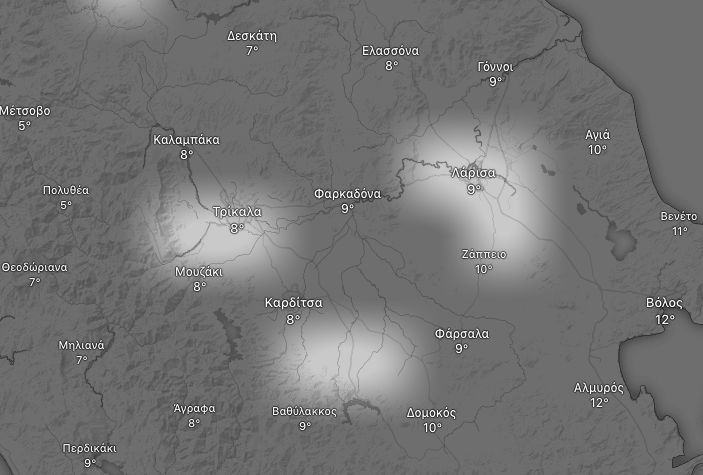 Ο δορυφόρος κατέγραψε έναν συμπαγή εγκλωβισμό ομίχλης σε διάφορα σημεία της Θεσσαλίας.