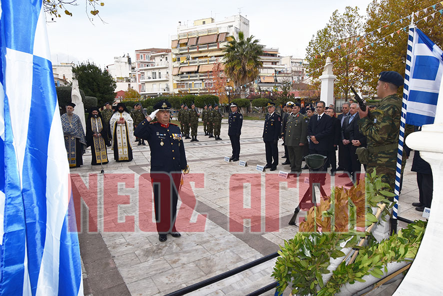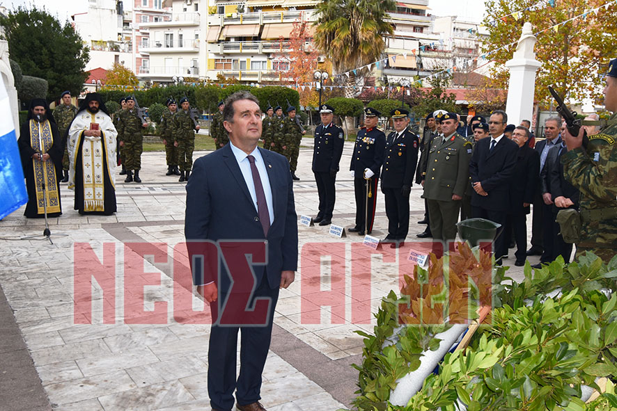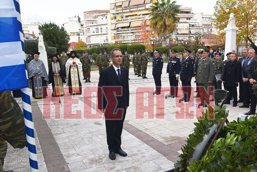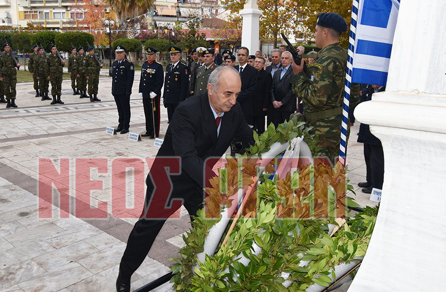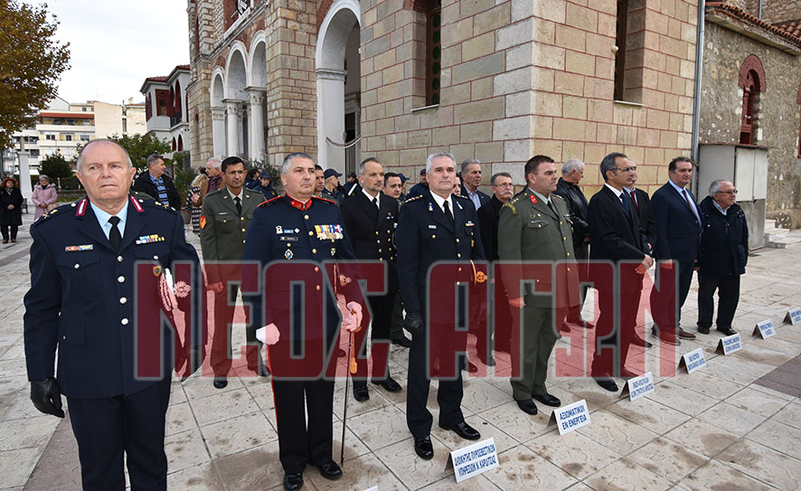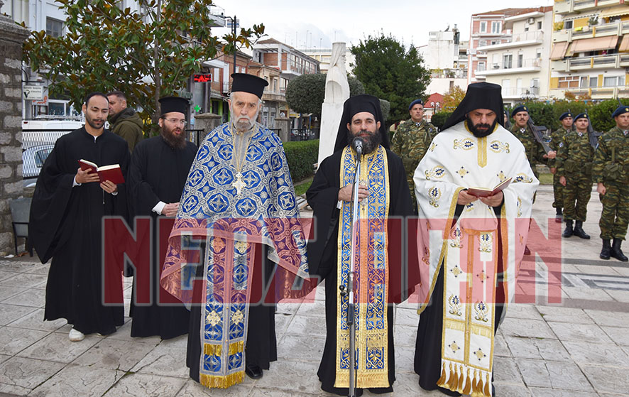 Στη συνέχεια έγινε επιμνημόσυνη δέηση μπροστά στο ηρώο των πεσόντων στο προαύλιο του Μητροπολιτικού Ναού και κατάθεση στεφάνων.