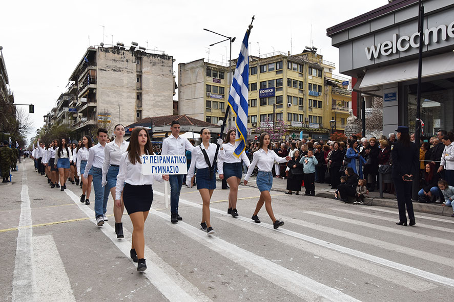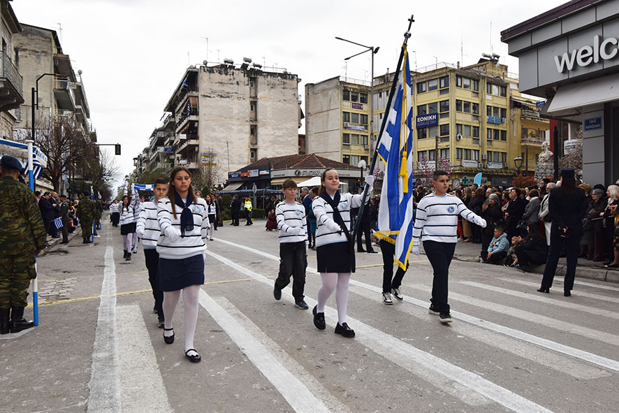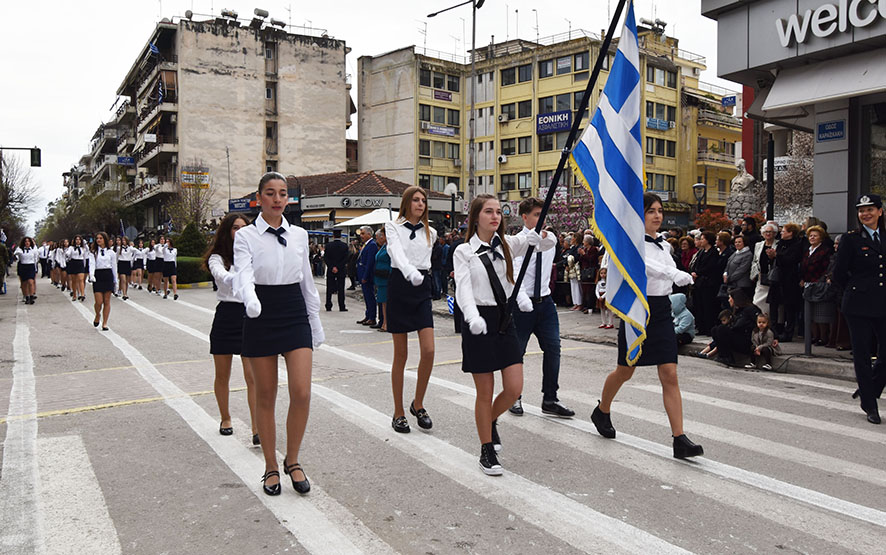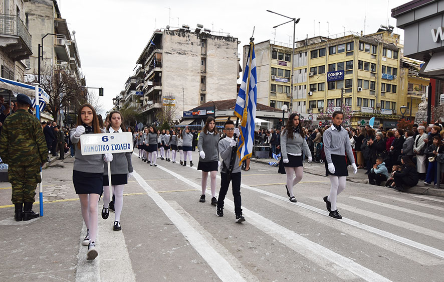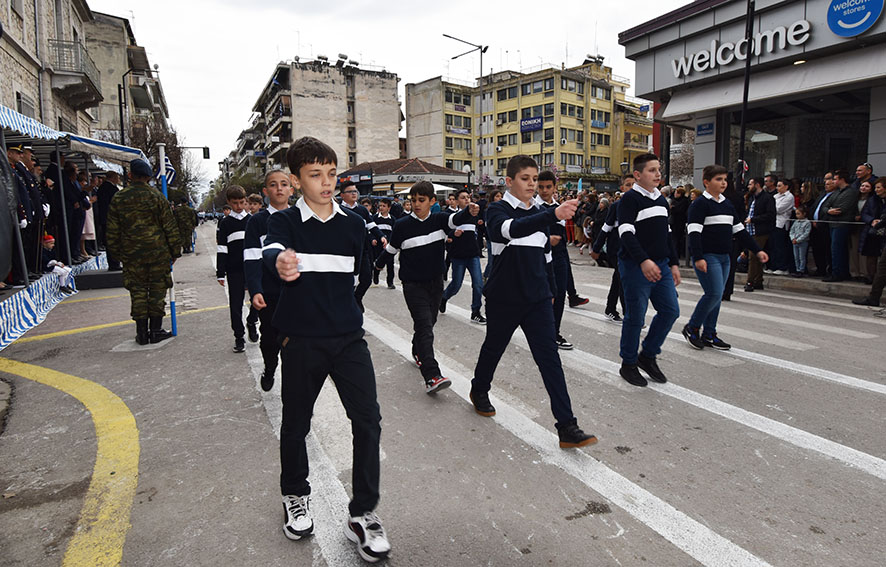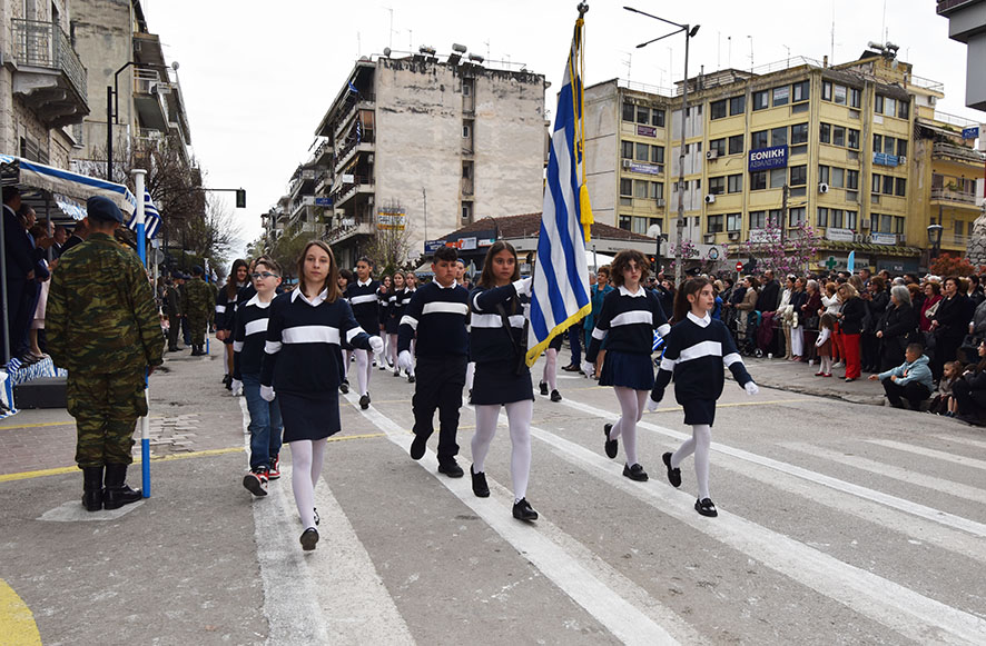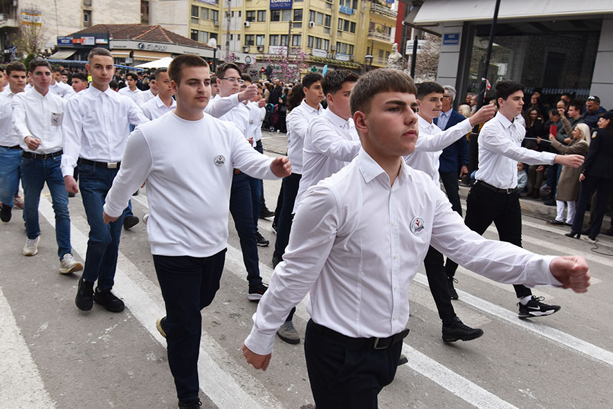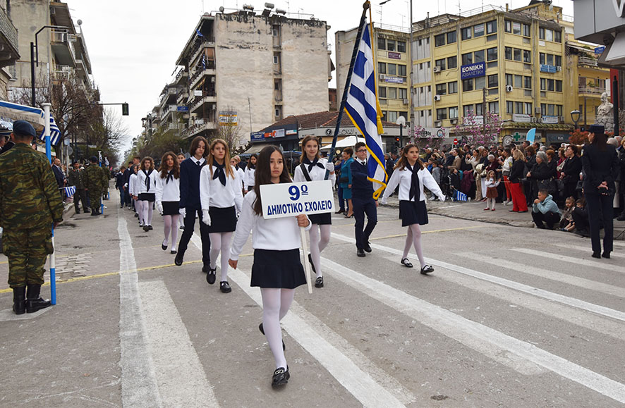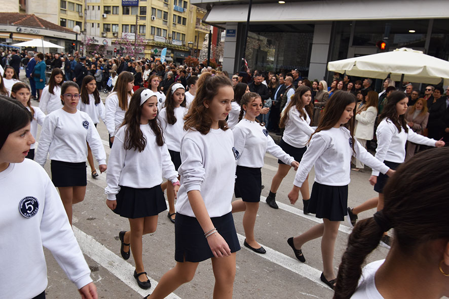 Χιλιάδες Καρδιτσιώτες συνέρρευσαν στην οδό Καραϊσκάκη στο κέντρο της πόλης για να καμαρώσουν και να χειροκροτήσουν θερμά τη μαθητιώσσα νεολαία.