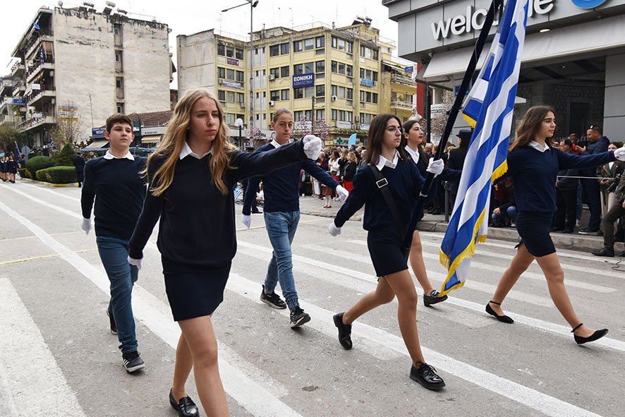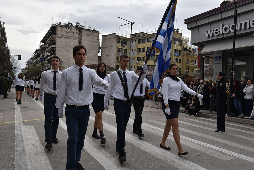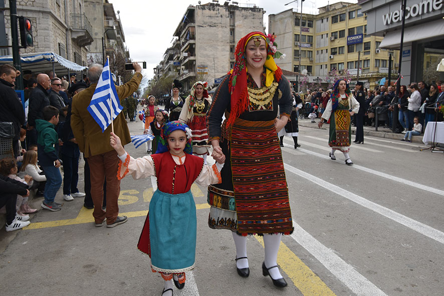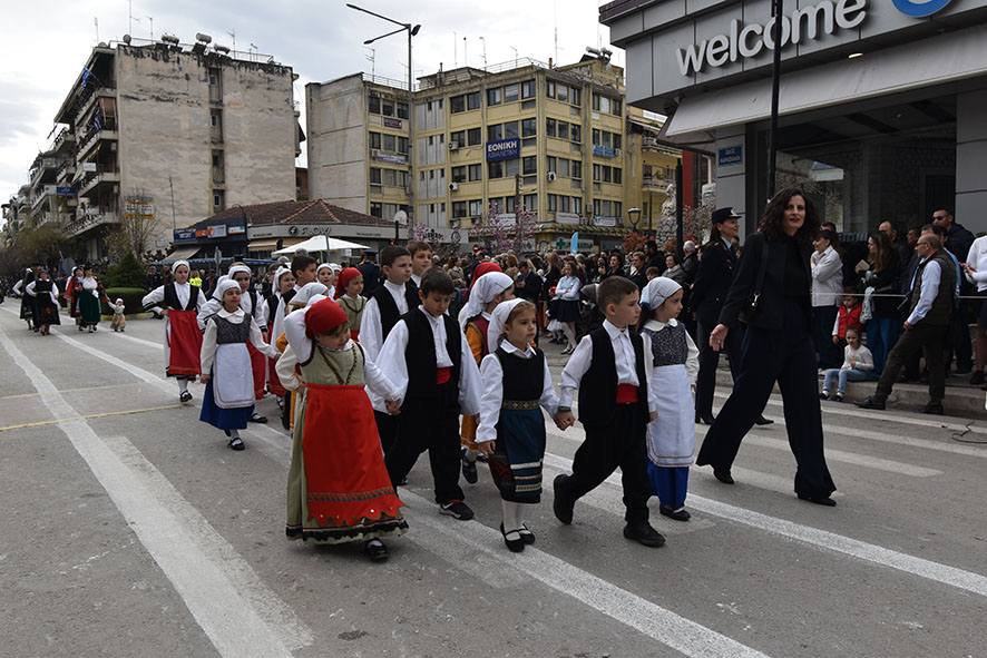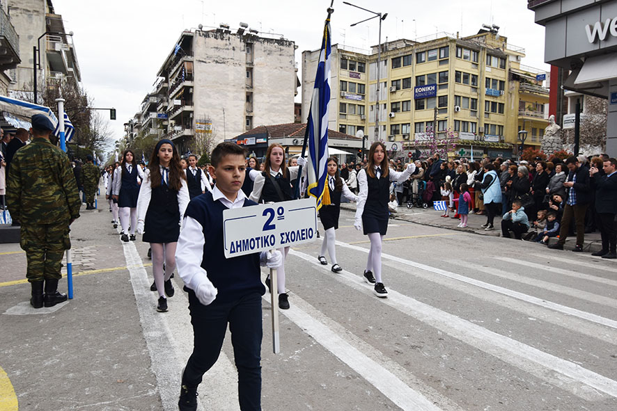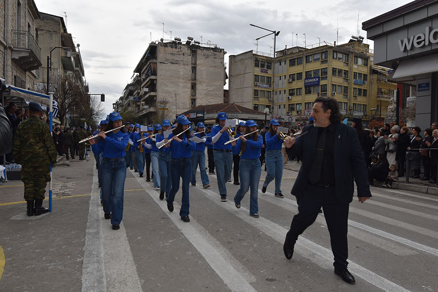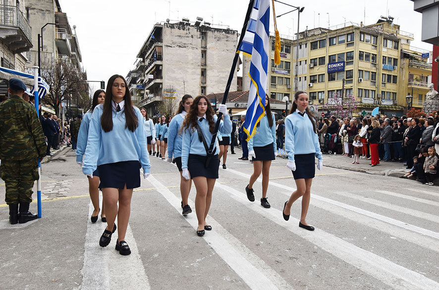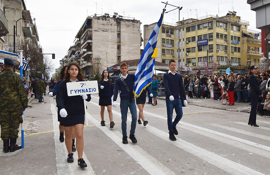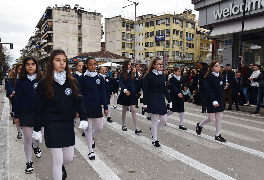 Χιλιάδες Καρδιτσιώτες συνέρρευσαν στην οδό Καραϊσκάκη στο κέντρο της πόλης για να καμαρώσουν και να χειροκροτήσουν θερμά τη μαθητιώσσα νεολαία.