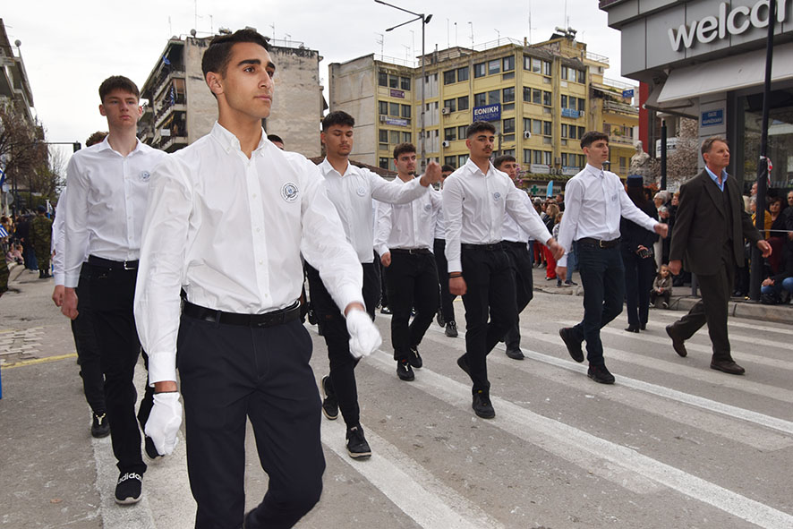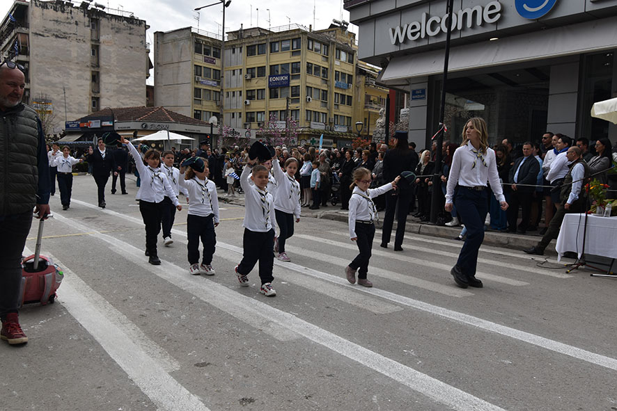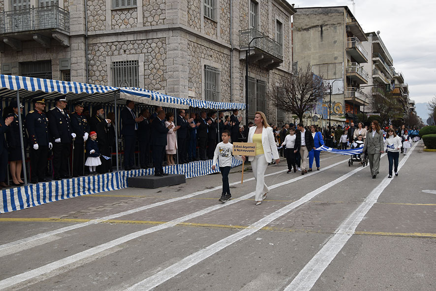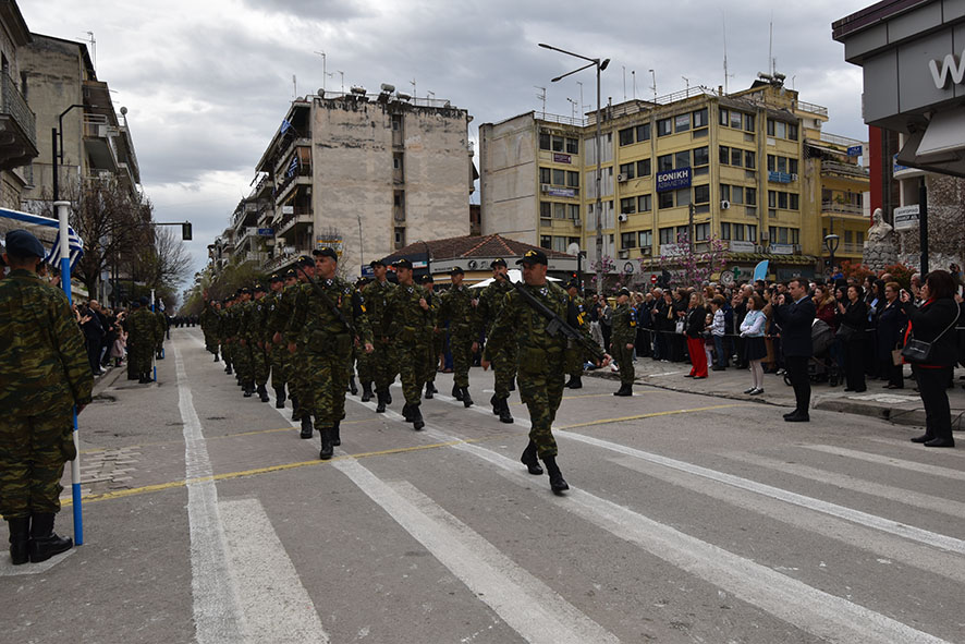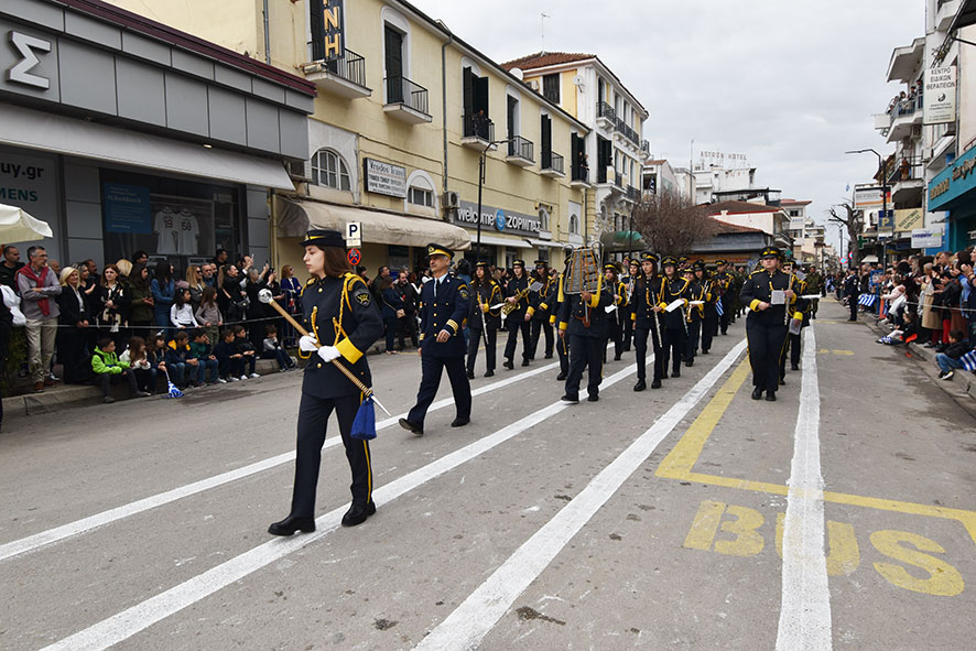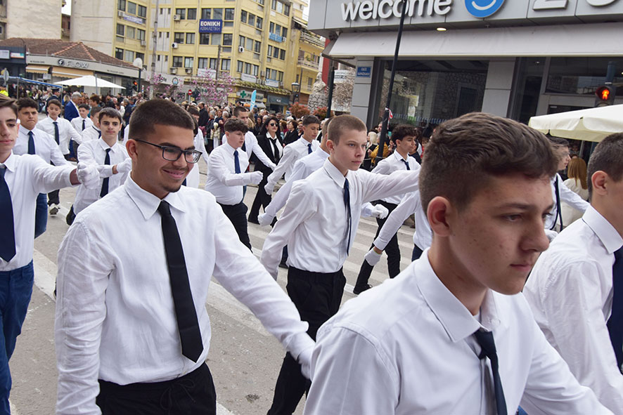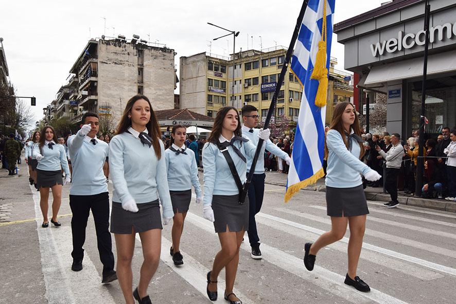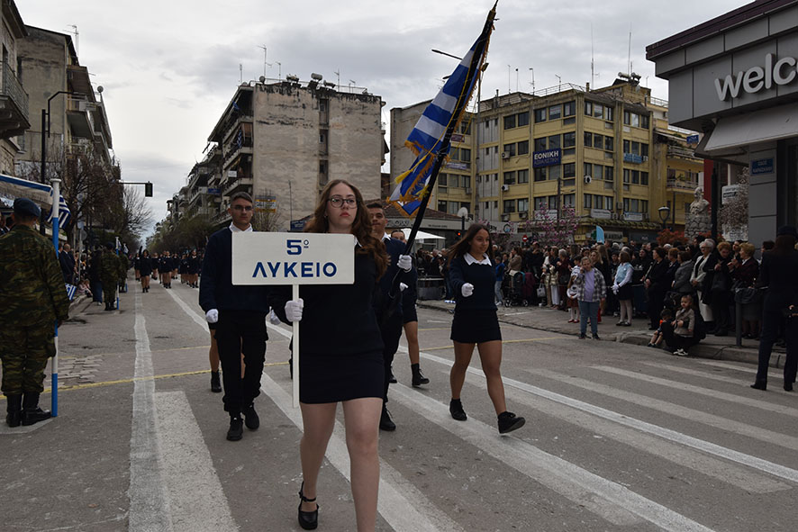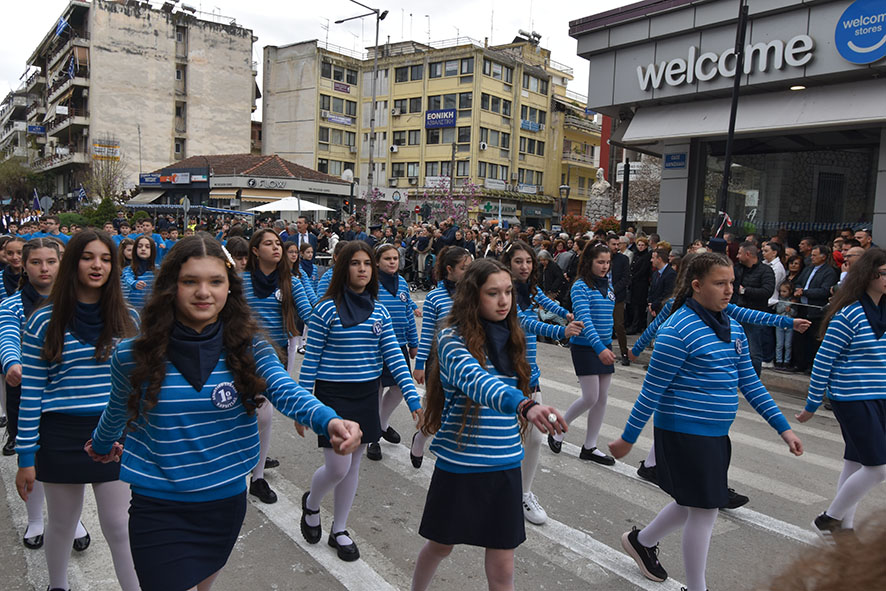 Χιλιάδες Καρδιτσιώτες συνέρρευσαν στην οδό Καραϊσκάκη στο κέντρο της πόλης για να καμαρώσουν και να χειροκροτήσουν θερμά τη μαθητιώσσα νεολαία.
