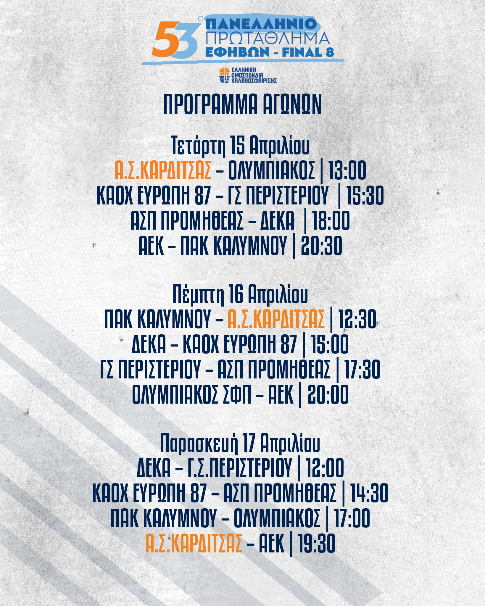 Ξεκινά αύριο (Τετάρτη 15 Απριλίου) η προημιτελική φάση του Πανελληνίου πρωταθλήματος μπάσκετ των Εφήβων όπου το παρών δίνει και η ομάδα του ΑΣΚ που διαγράφει μία καταπληκτική πορεία και φέτος.