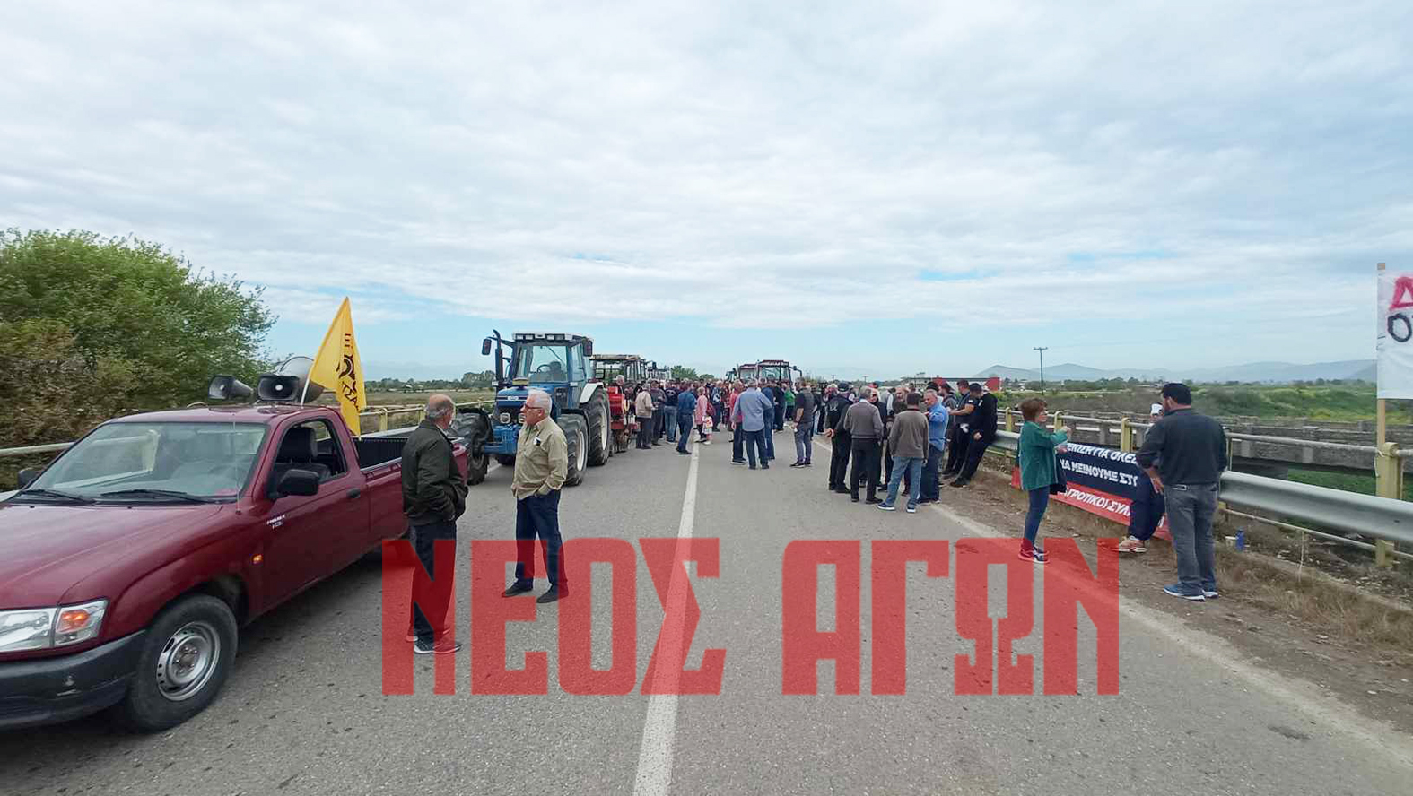 Το κομβόι με τα τρακτέρ έφτασε στη γέφυρα «Σταυρός» στις 11 το πρωί όπου βρίσκονταν ήδη αγρότες και εκπρόσωποι εργατικών σωματείων και φορέων του νομού.