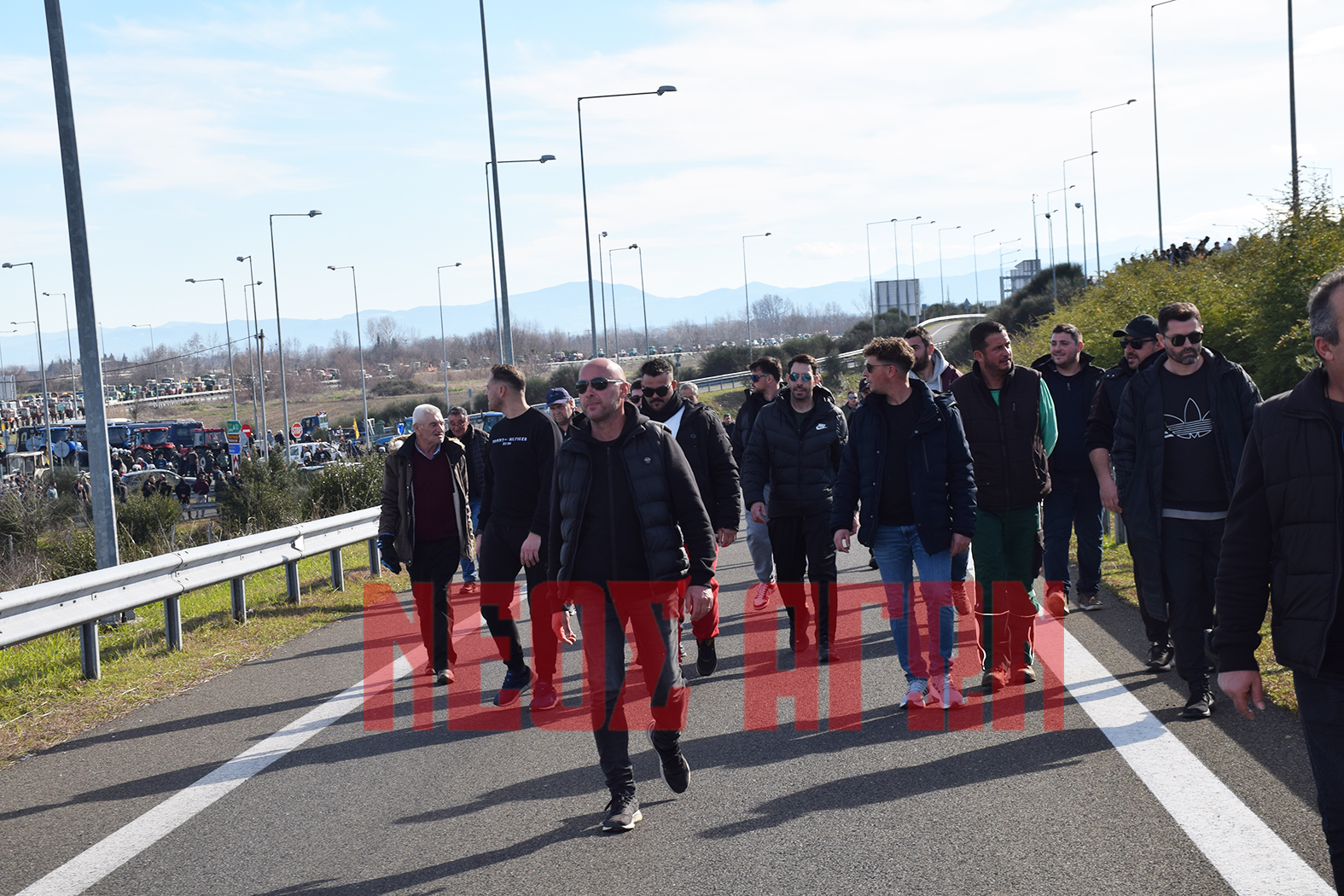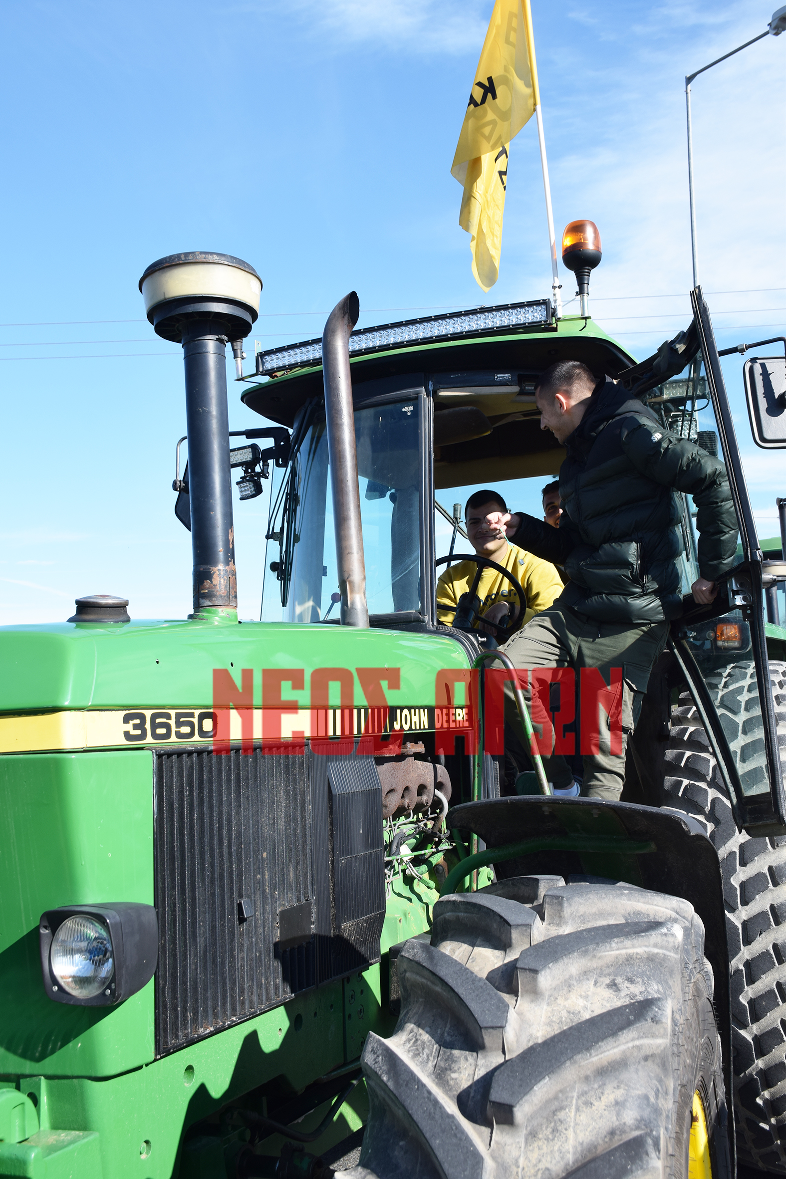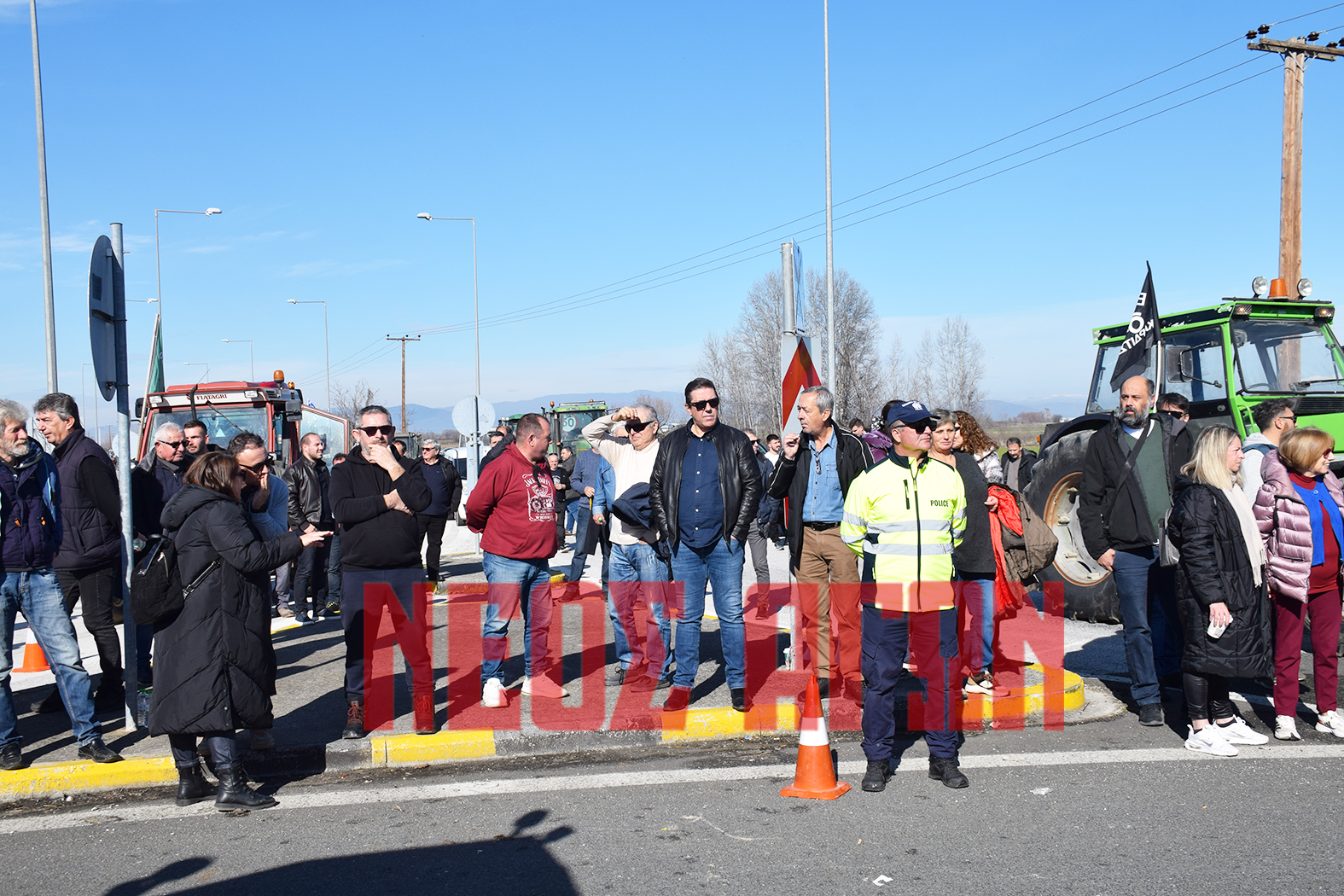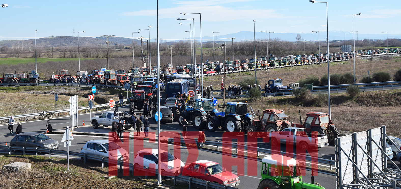 Εκατοντάδες τρακτέρ που ξεκίνησαν κομβόι από χωριά, κατέκλυσαν τους δρόμους πέριξ του κυκλικού κόμβου του Ε-65. Παρόντες ήταν και εκπρόσωποι σωματείων και φορέων για να εκφράσουν τη συμπαράστασή τους.