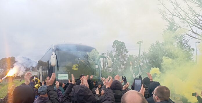 Χαρακτηριστικά είναι τα στιγμιότυπα από την ατμόσφαιρα… αγώνα που δημιούργησαν οι “κιτρινόμαυροι” οπαδοί που εμψύχωσαν τους παίκτες της αγαπημένης τους ομάδας για το ντέρμπι.
