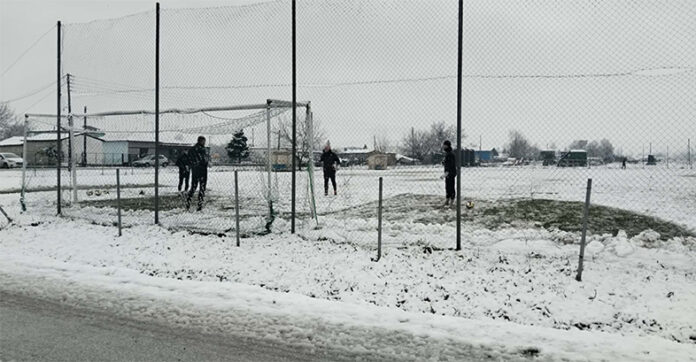 Οι “κιτρινόμαυροι” προπονήθηκαν κανονικά στο “Γιώργος Μπαζής” στο Σταυρό, παρά το ότι το τοπίο ντύθηκε στα λευκά από το χιόνι που έκανε την εμφάνιση στην περιοχή μας…