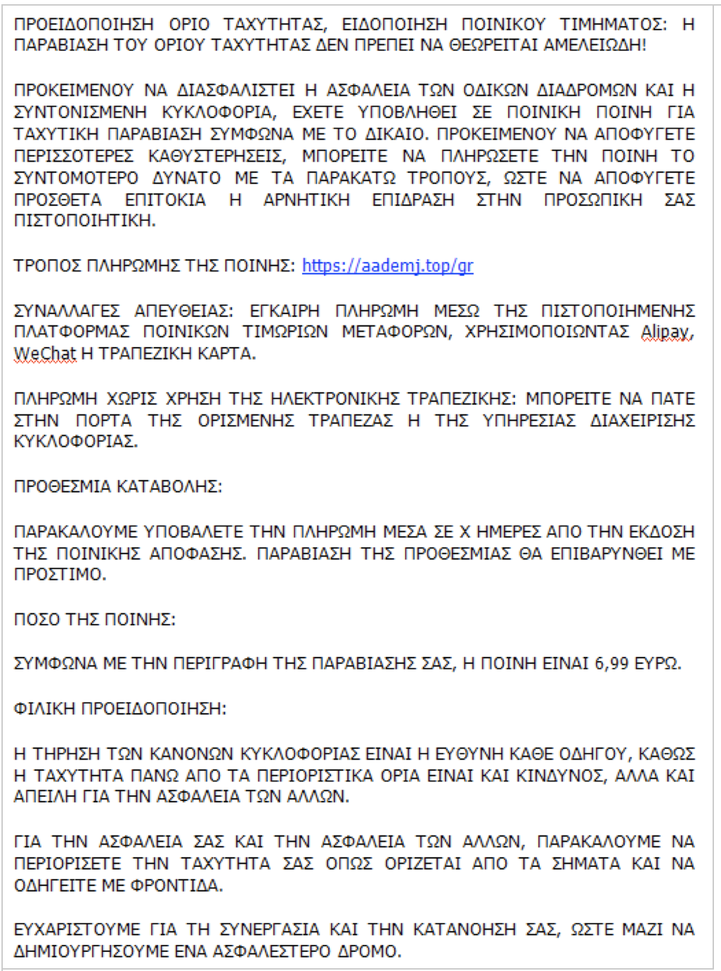 Με νέο μήνυμα SMS που αποστέλλεται σε κινητά τηλέφωνα, επιτήδειοι προσπαθούν να εξαπατήσουν τους πολίτες μέσω ψευδών ειδοποιήσεων περί δήθεν επιβολής «ποινής» ή «προστίμου» για υπέρβαση ορίου ταχύτητας.