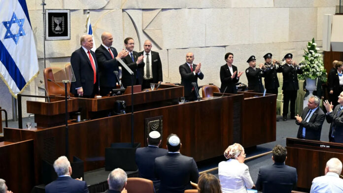 Ο Τραμπ είναι ο τέταρτος Αμερικανός πρόεδρος που μιλά αυτή την ώρα στο Κοινοβούλιο του Ισραήλ, το οποίο τον αποθέωσε κατά την εισόδο του, καταχειροκροτώντας τον.