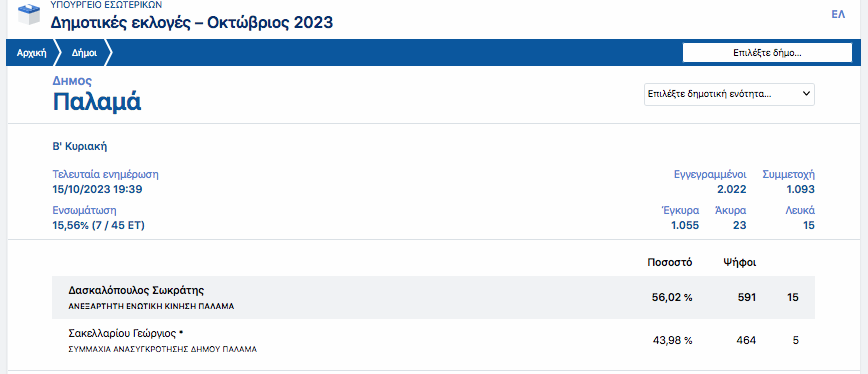 Καρδίτσα Παλαμάς: Προβάδισμα Δασκαλόπουλου στο 15% της ενσωμάτωσης 15 Οκτωβρίου 2023, 7:43 μμ FacebookTwitterWhatsAppLinkedin Τελευταίες Ειδήσεις Σήμερα Ακολούθησε την εφημερίδα ΝΕΟΣ ΑΓΩΝ στο Google News! Όλες οι εξελίξεις στην περιοχή της Καρδίτσας και ευρύτερα της Θεσσαλίας