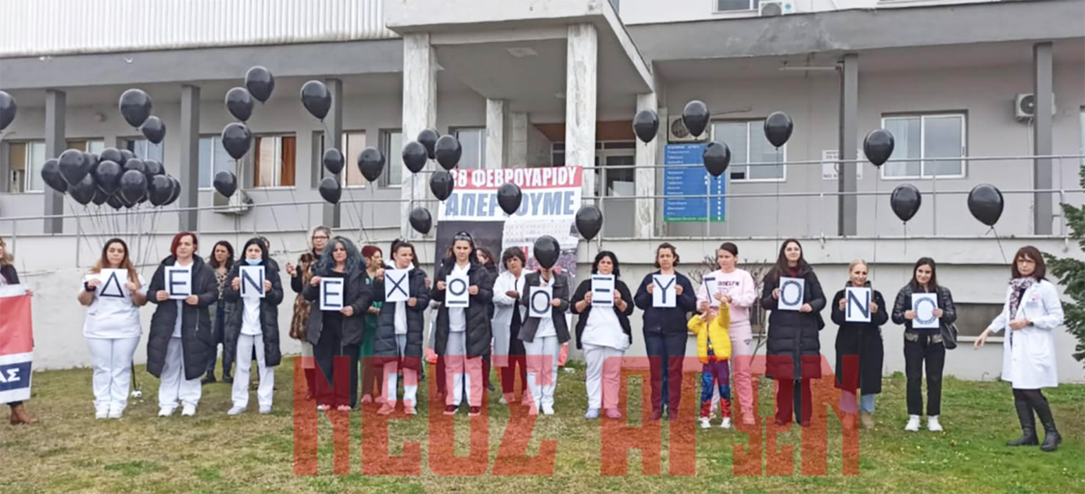 Σχηματίζοντας τη φράση «ΔΕΝ ΕΧΩ ΟΞΥΓΟΝΟ» και απελευθερώνοντας συμβολικά στον ουρανό μαύρα μπαλόνια στη μνήμη των αδικοχαμένων θυμάτων της τραγωδίας των Τεμπών, γιατροί και εργαζόμενοι στο Νοσοκομείο προχώρησαν σήμερα (27/2) το πρωί σε συμβολική κινητοποίηση στην πύλη του Νοσοκομείου, ενώ ανήρτησαν και μεγάλο πανό.