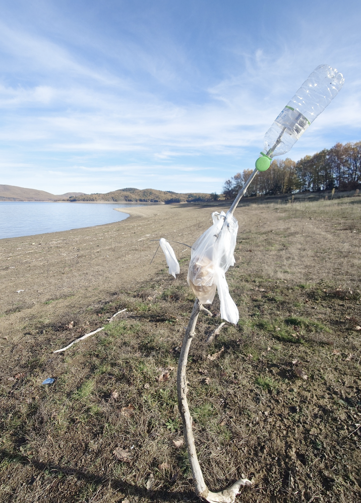 βόλτα του και φρόντισε να «στολίσει» το κλαδί βάζοντας τη σακούλα με τα αποφάγια και στην κορυφή το άδειο μπουκαλάκι από το νερό!