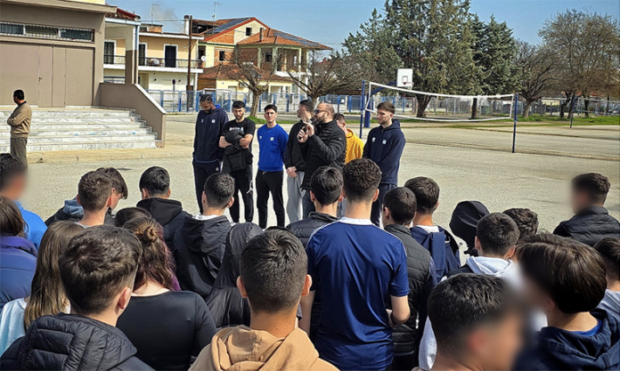 Η επίσκεψη πραγματοποιήθηκε ύστερα από πρόσκληση του Διευθυντή του σχολείου κ. Ν.Καραγιάννη, με τους μαθητές να θέτουν ερωτήματα στους παίκτες της ομάδας μας και να συμμετέχουν ενεργά σε έναν ουσιαστικό διάλογο γύρω από το φαινόμενο του σχολικού εκφοβισμού.