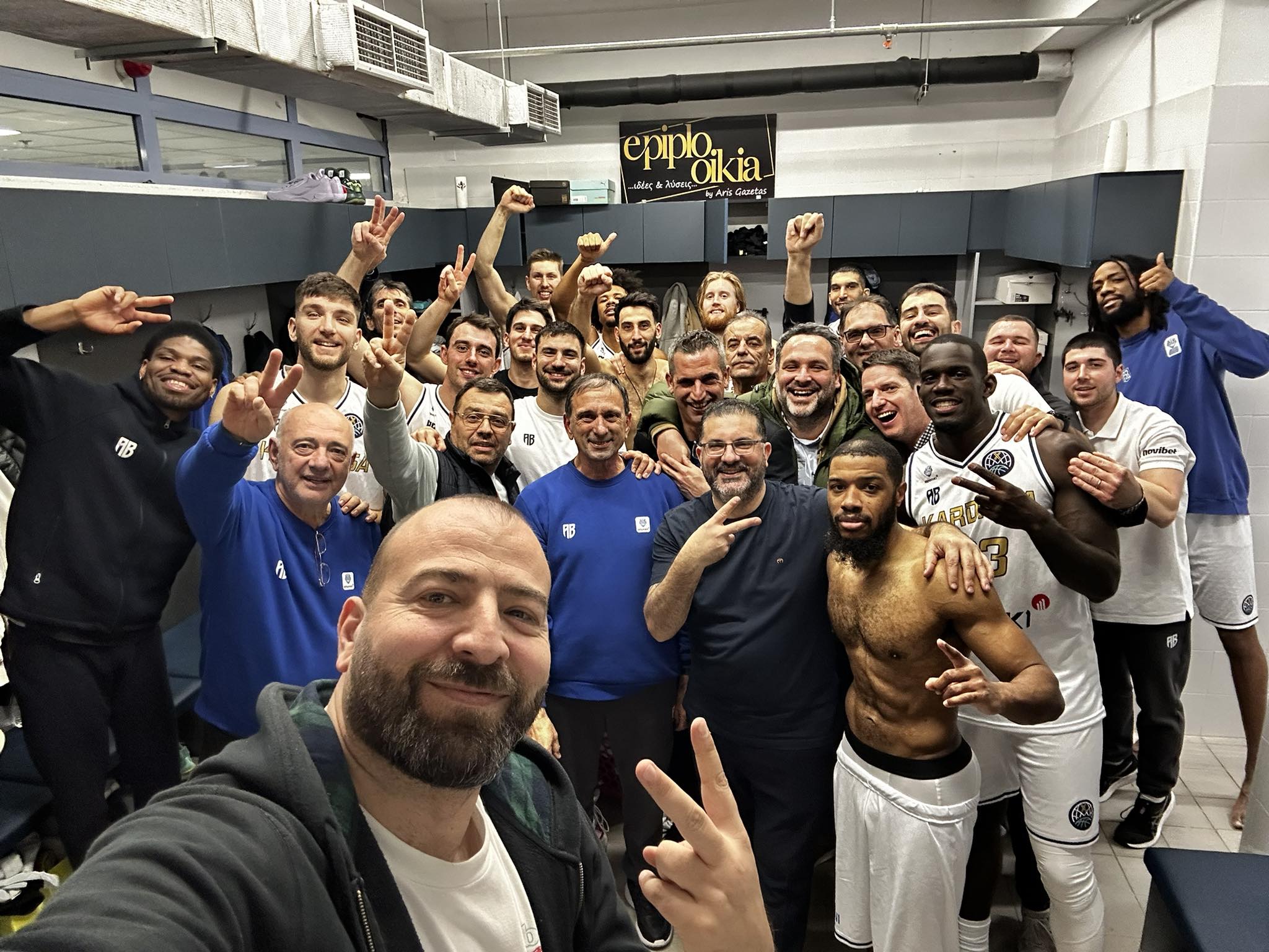 Όπως, πλέον, συνηθίζεται μετά από κάθε μεγάλη επιτυχία, απαθανατίστηκε στιγμή στ’ αποδυτήρια με την καθιερωμένη selfie για τον μεγάλο άθλο που αφιερώθηκε σε όλη την Καρδίτσα και όπου στον κόσμο ζουν Καρδιτσιώτες…