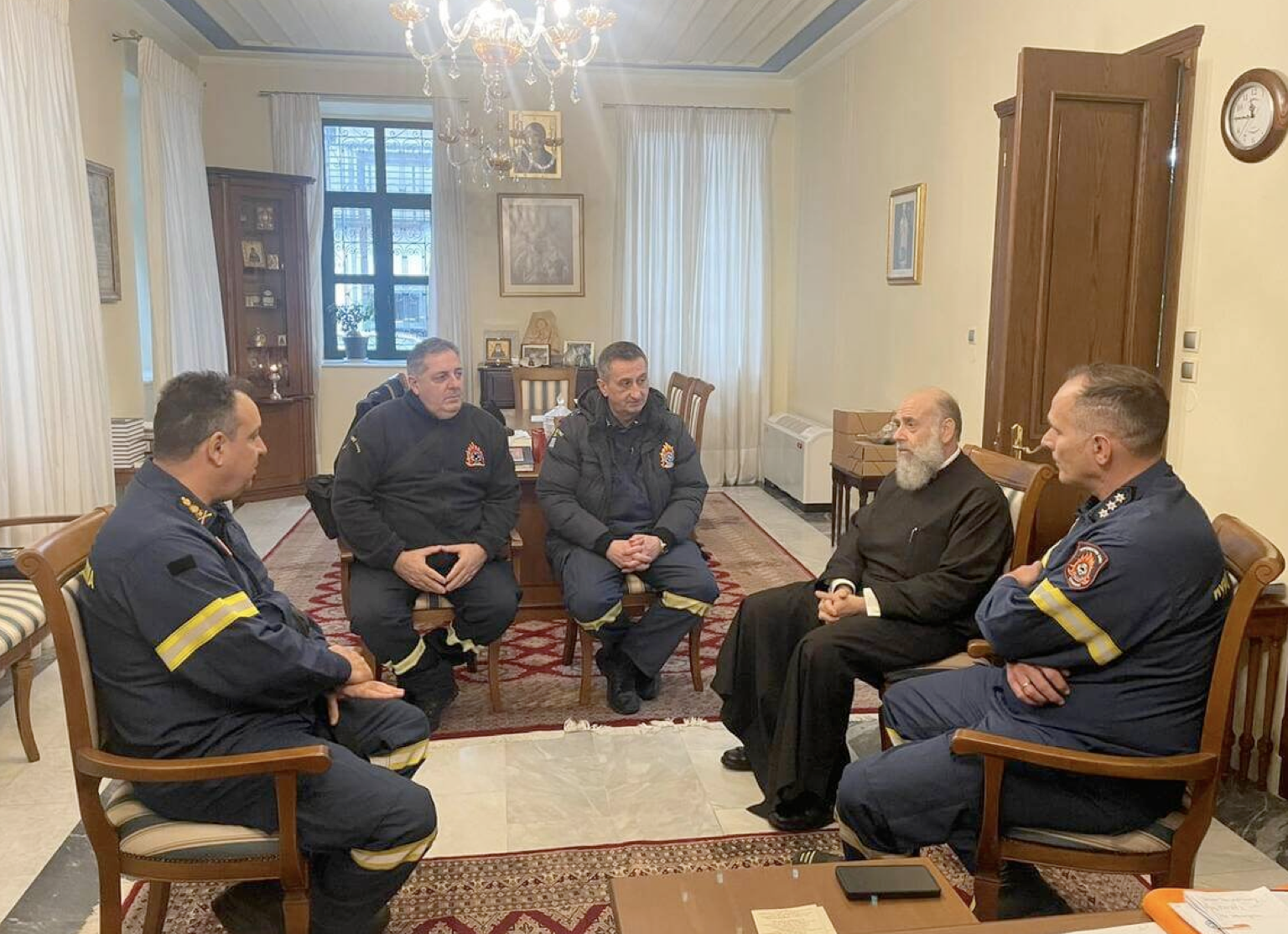 Ο νέος Διοικητής Πυροσβεστικών Υπηρεσιών στον Σεβασμιώτατο κ. Τιμόθεο